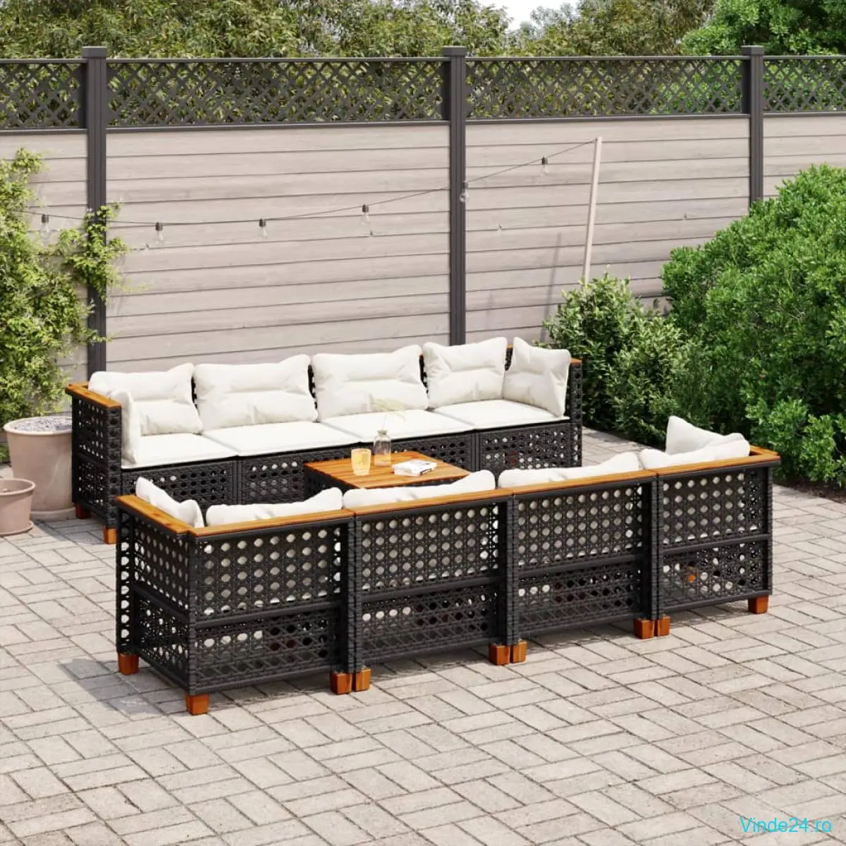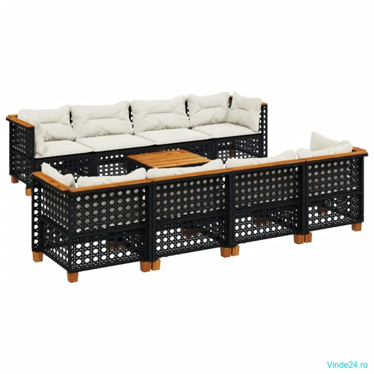 vidaXL Set mobilier de grădină cu perne, 9 piese, negru, poliratan