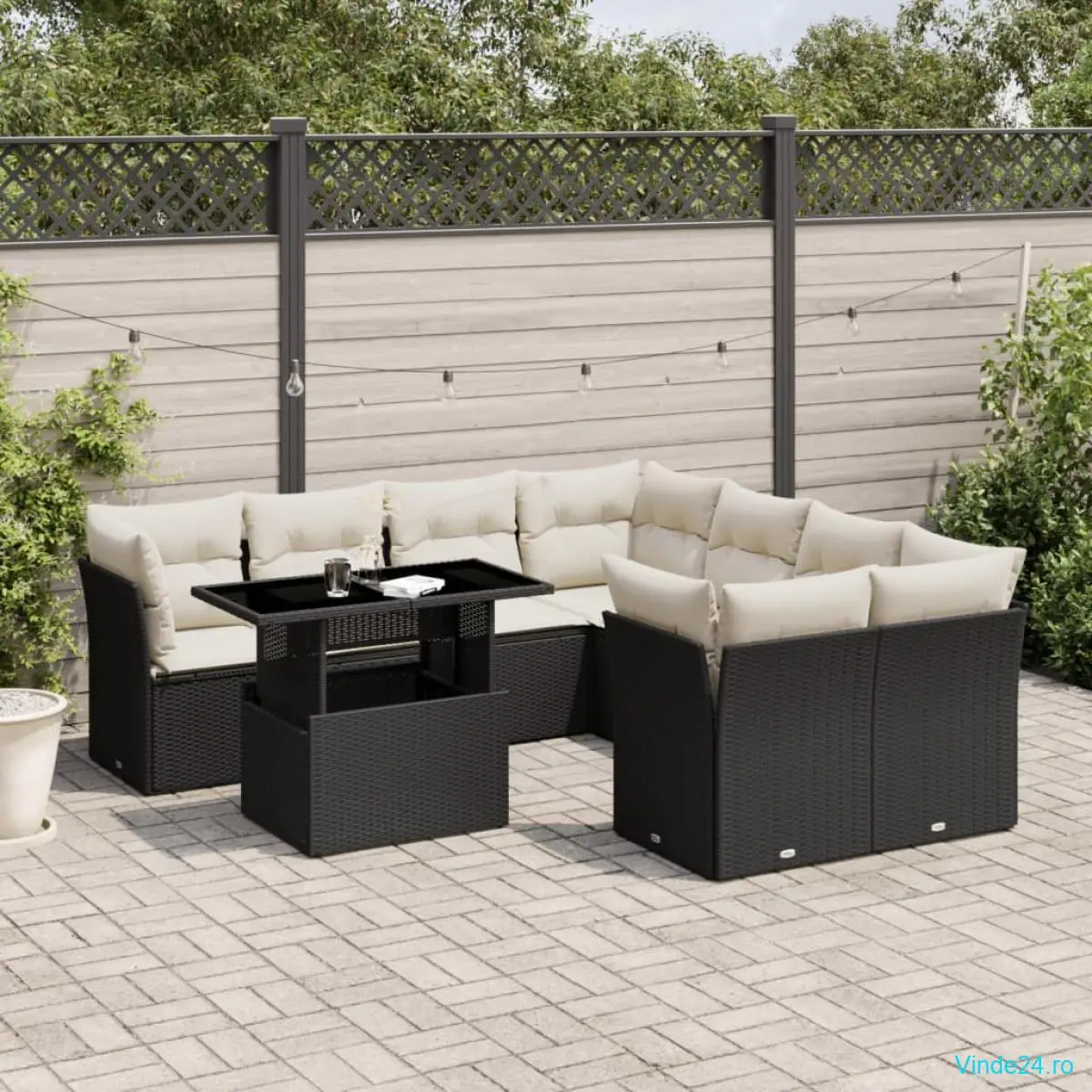 - Experiență confortabilă de ședere: Acest mobilier de exterior, dotat complet cu perne groase căptușite, oferă o experiență confortabilă de ședere.