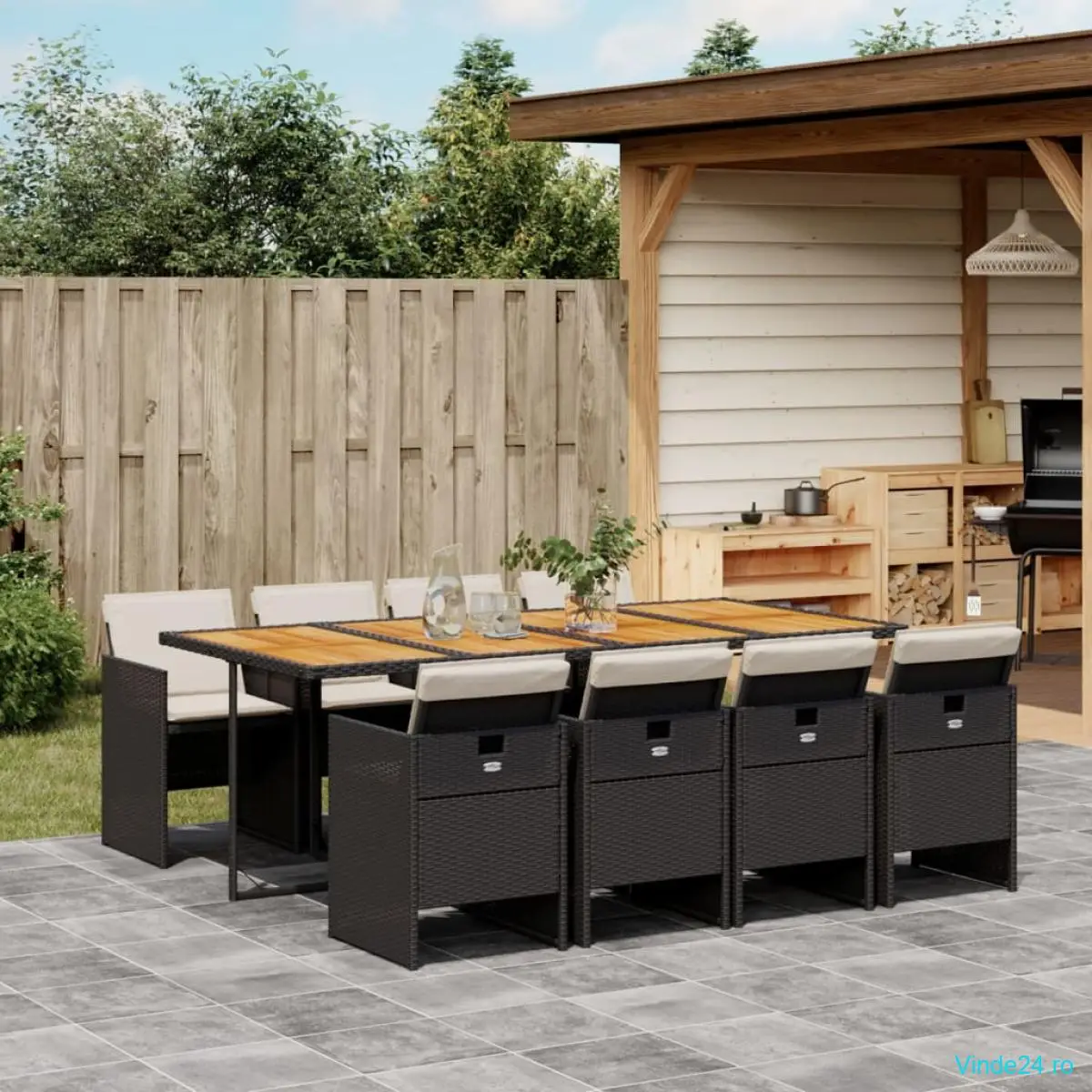 vidaXL Set mobilier de grădină cu perne, 9 piese, negru, poliratan