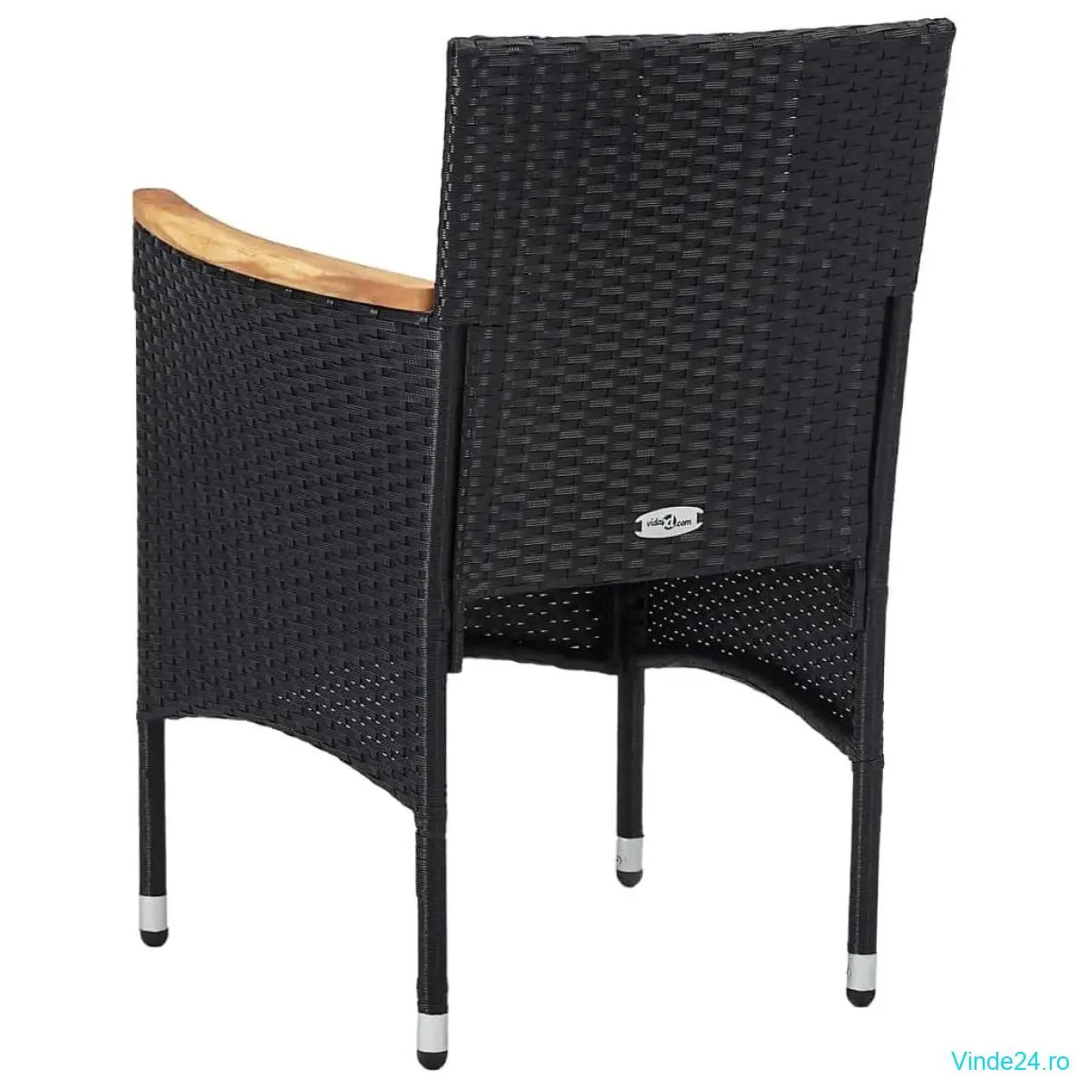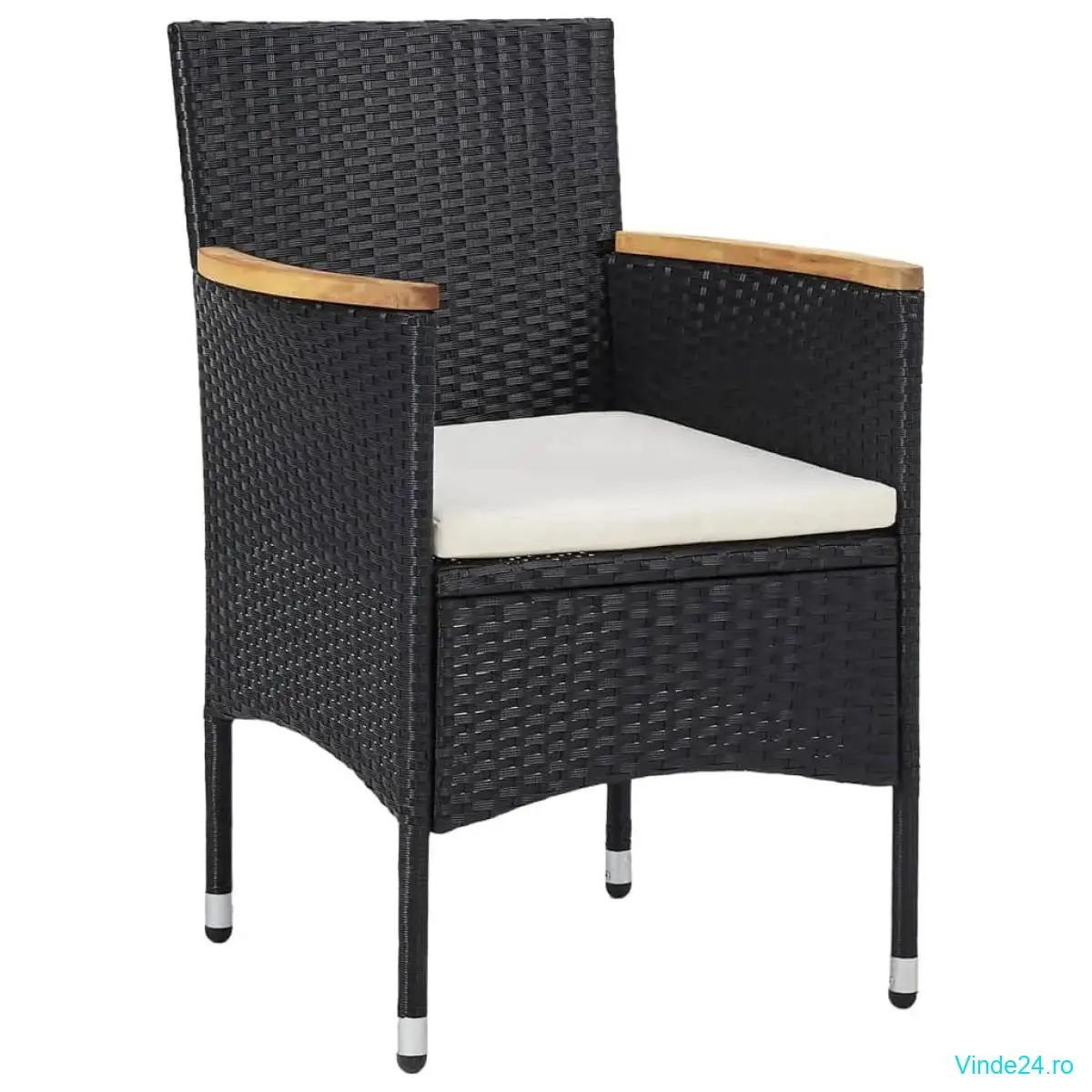 vidaXL Set mobilier grădină, 5 piese, negru, poliratan și lemn masiv.