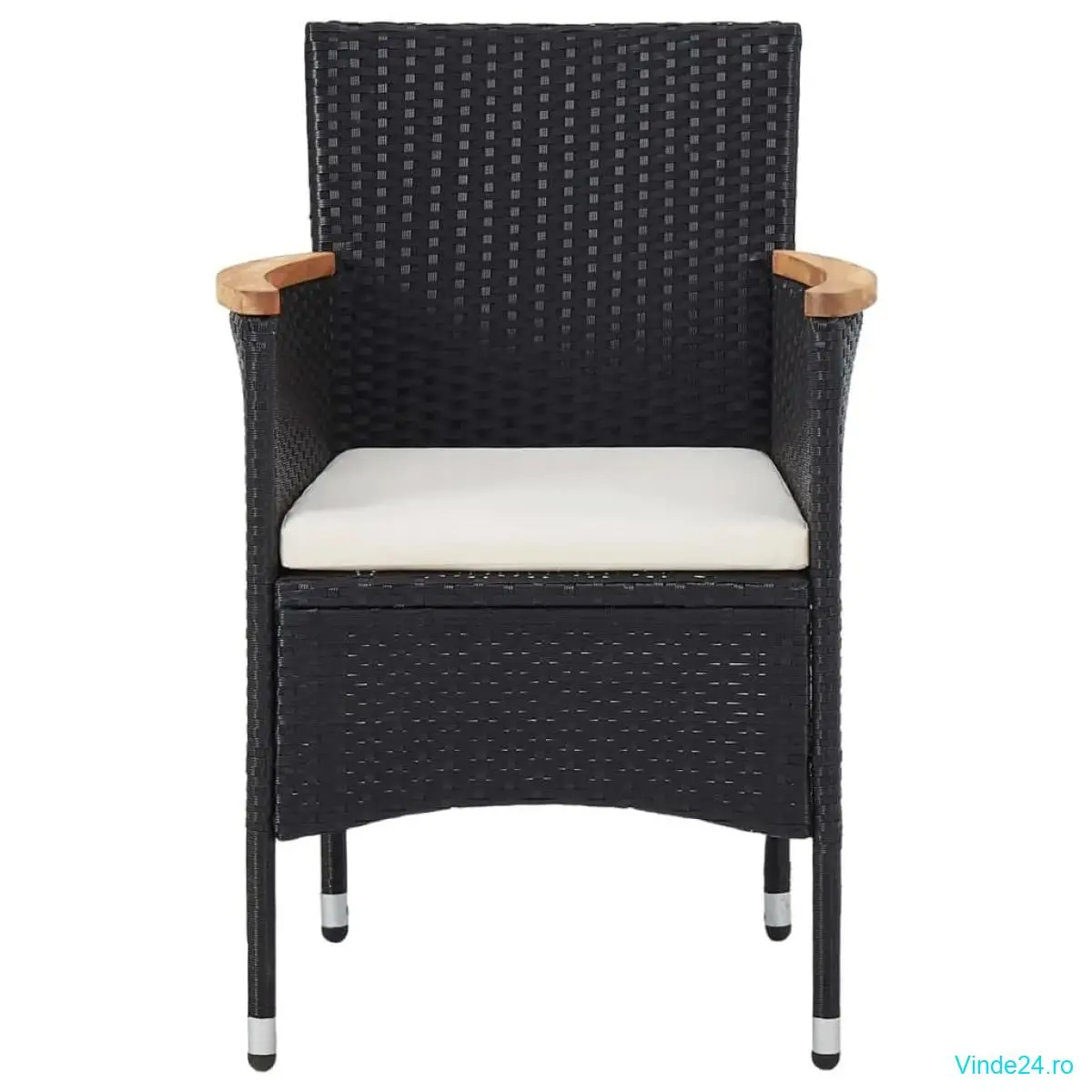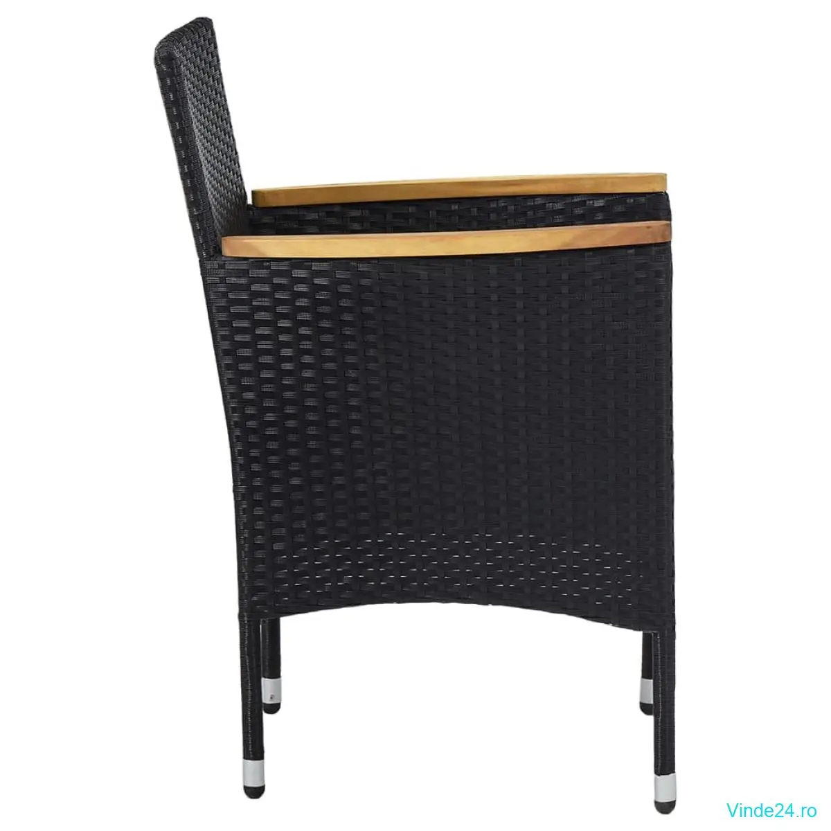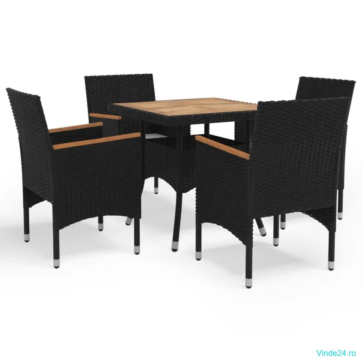 vidaXL Set mobilier grădină, 5 piese, negru, poliratan și lemn masiv.