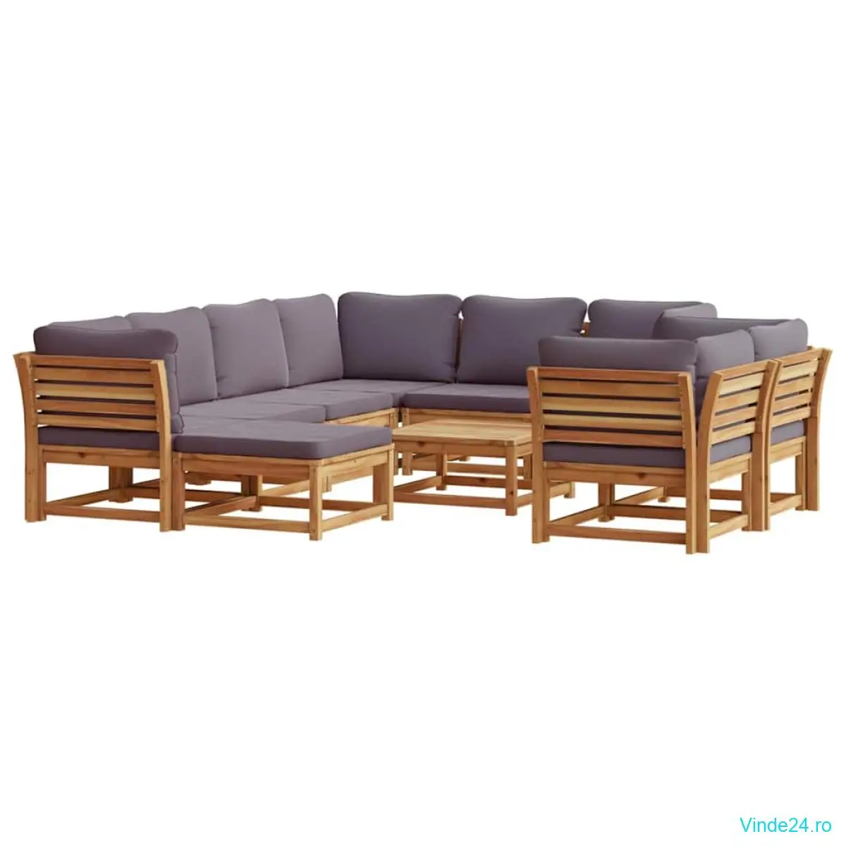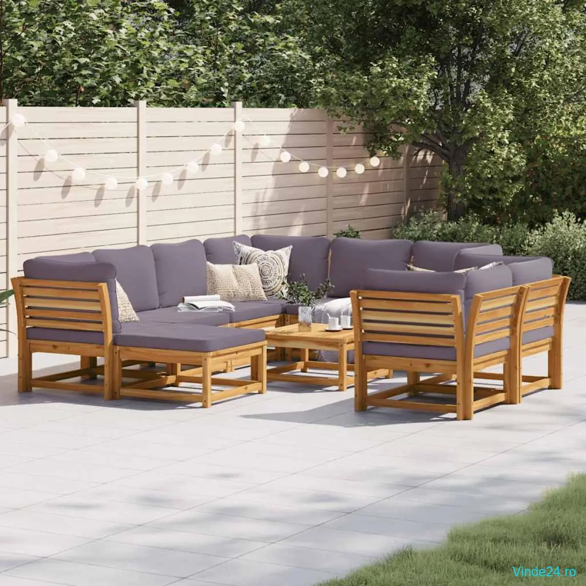 vidaXL Set mobilier grădină cu perne, 10 piese, lemn masiv acacia