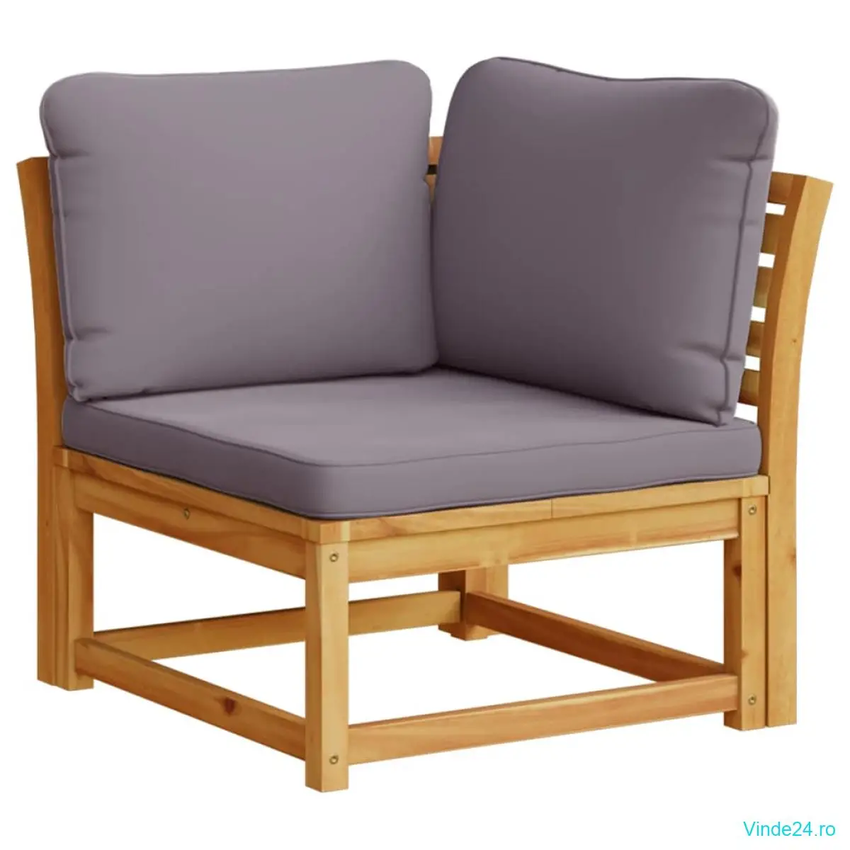 Acest set de mobilier pentru grădină, din lemn, cu perne, are un design elegant și este o alegere excelentă pentru relaxare și distracție, în grădină sau pe terasă.