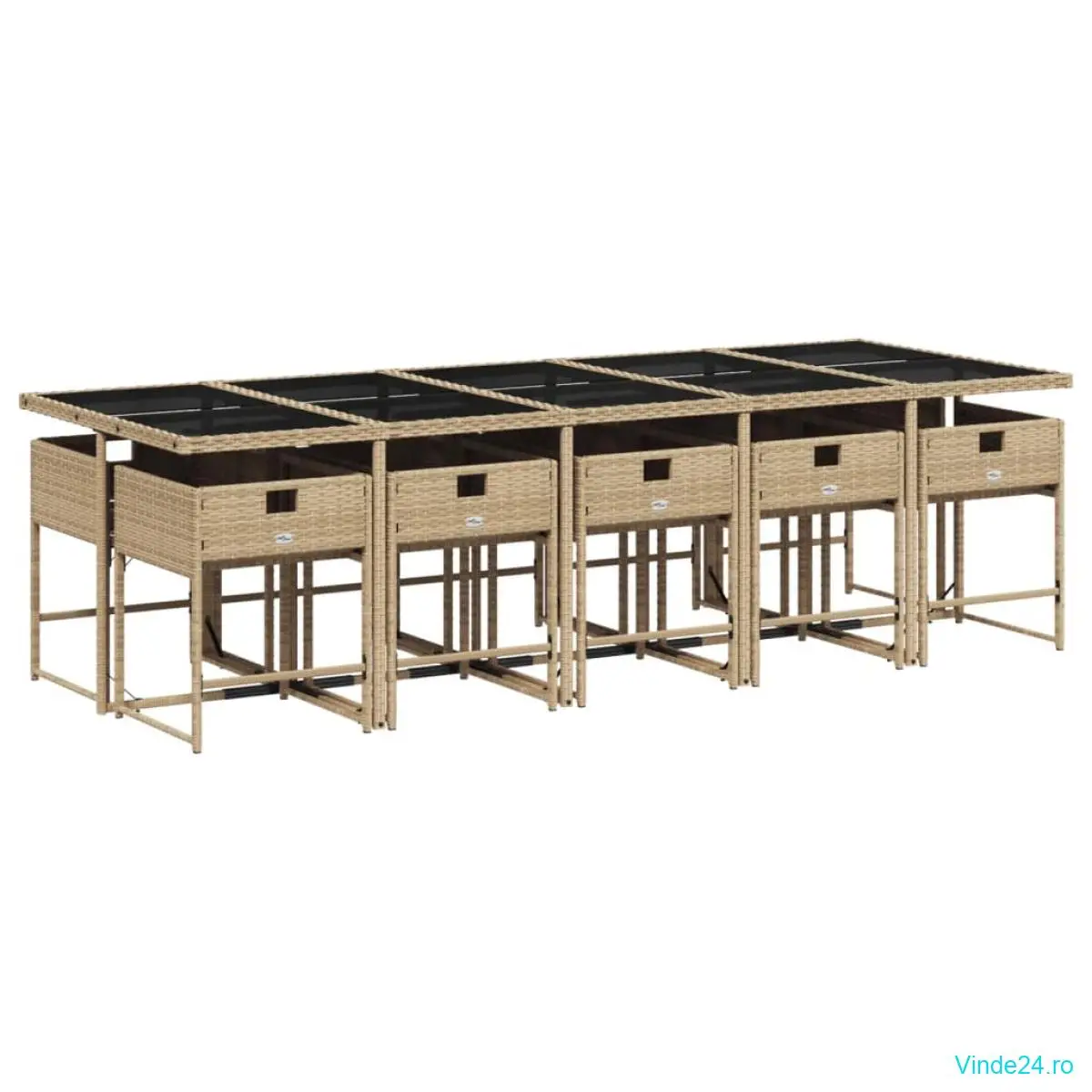 vidaXL Set mobilier grădină cu perne, 11 piese bej combinat poliratan
