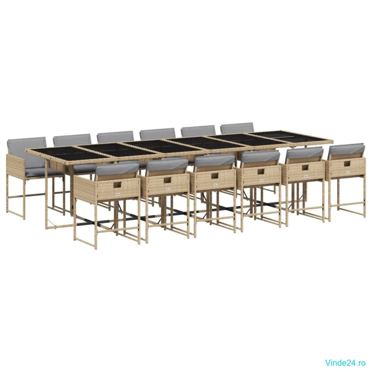 vidaXL Set mobilier grădină cu perne, 13 piese, bej combinat poliratan