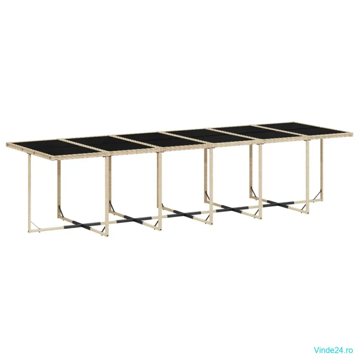 • Blat de masă din sticlă: Blatul mesei de exterior este fabricat din sticlă securizată puternică și durabilă, fiind ușor de curățat cu o cârpă umedă și adăugând o notă de eleganță spațiului dvs. de exterior.
