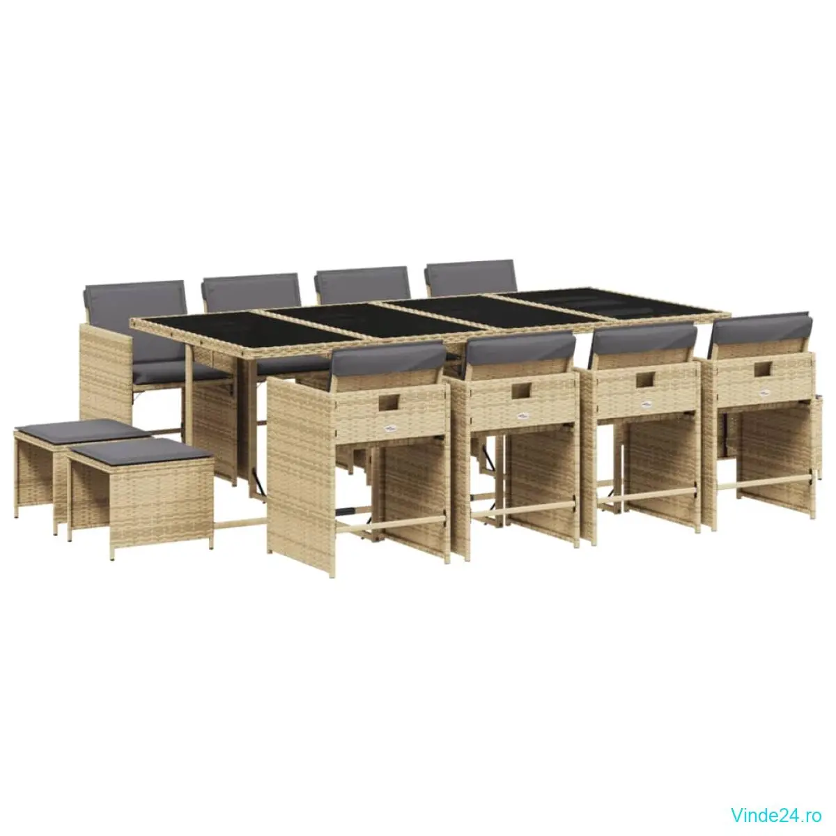 vidaXL Set mobilier grădină cu perne, 13 piese, bej combinat poliratan