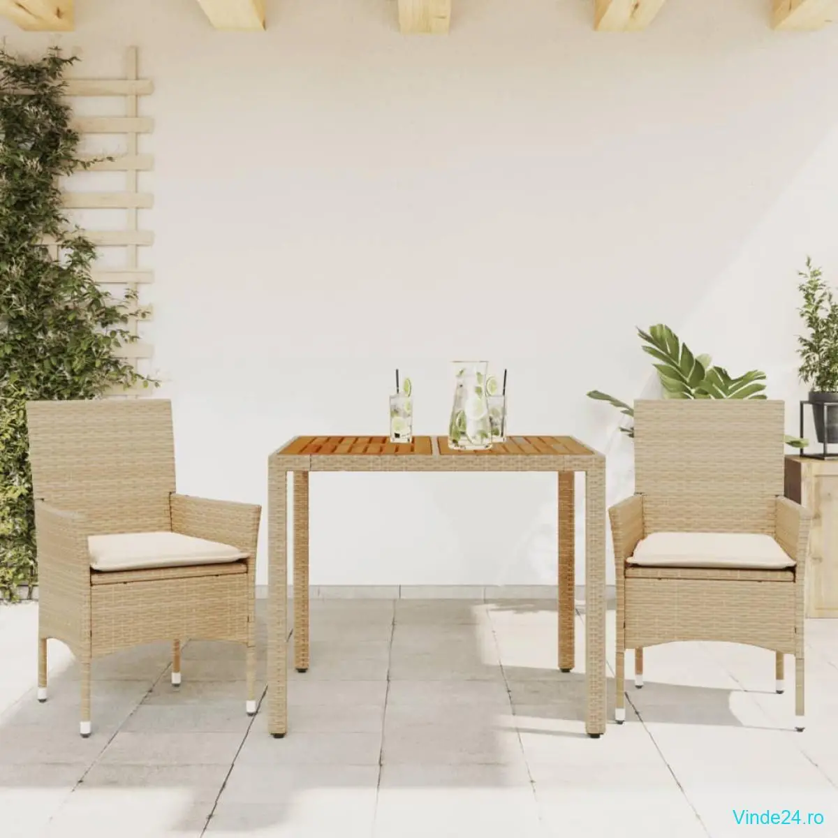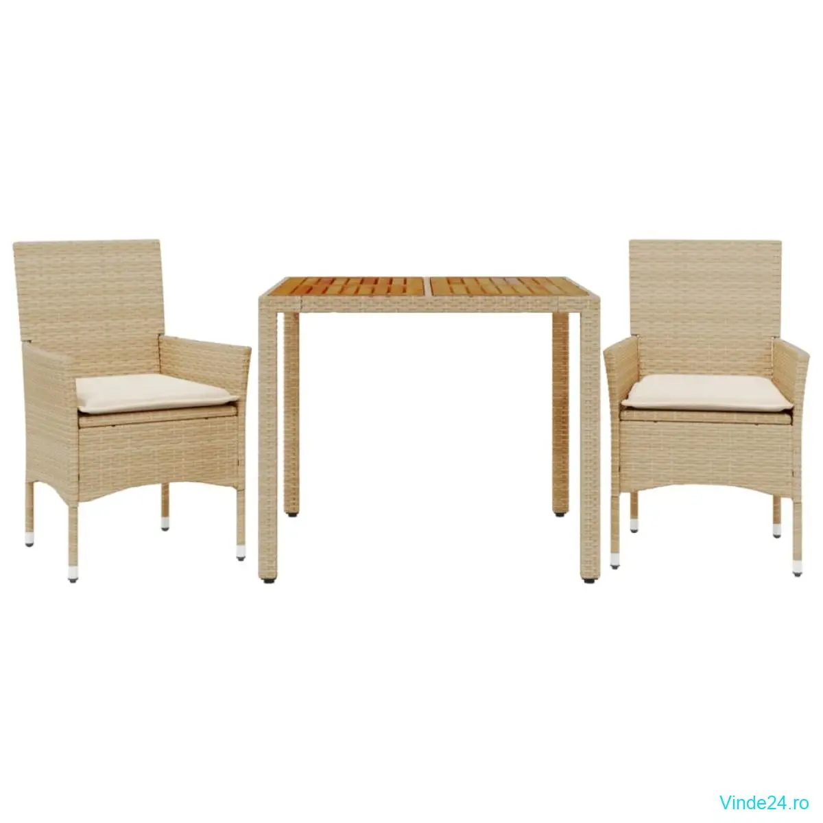 - Material: Ratan PE, oțel vopsit electrostatic, lemn masiv de acacia cu finisaj în ulei