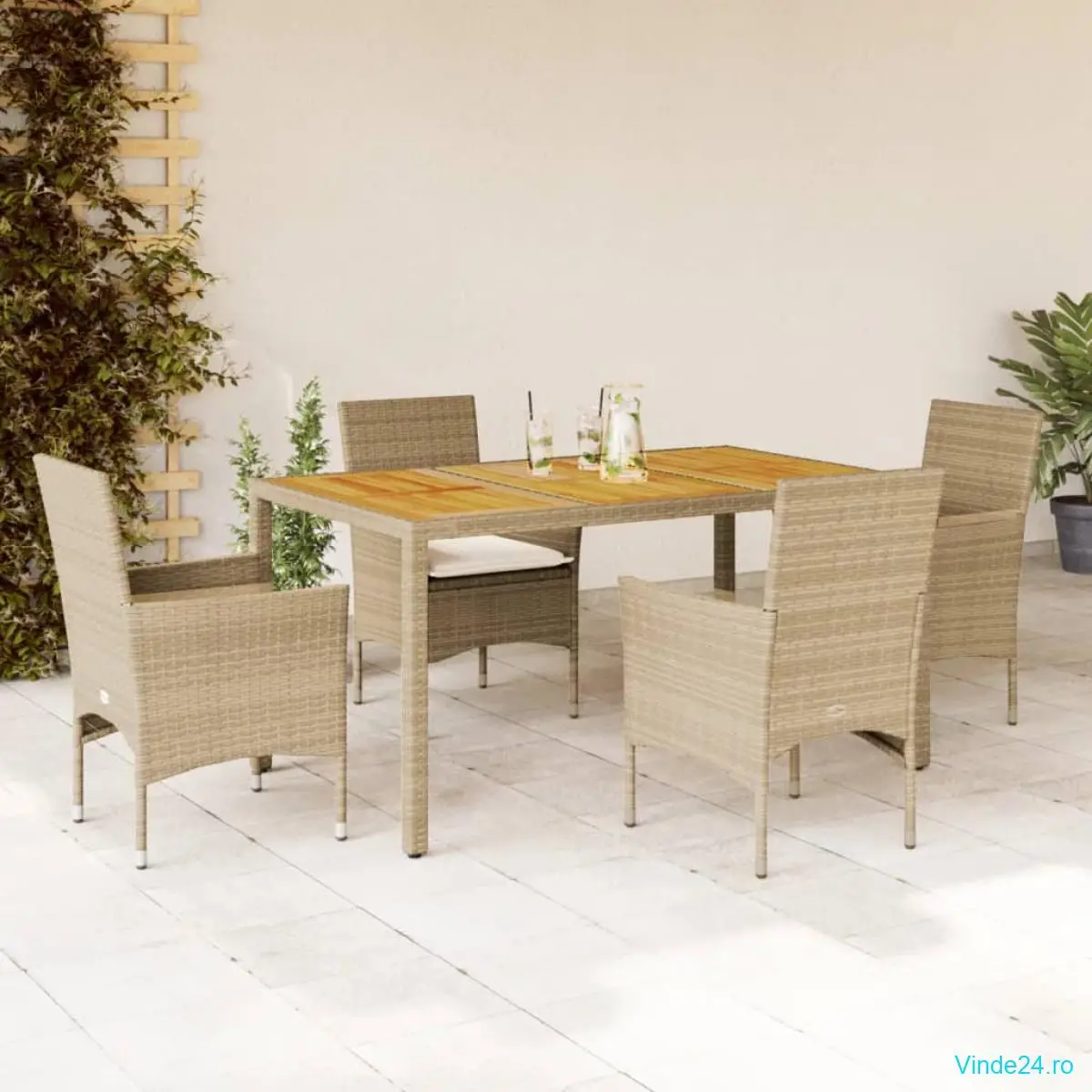 vidaXL Set mobilier grădină cu perne 5 piese bej poliratan/lemn acacia