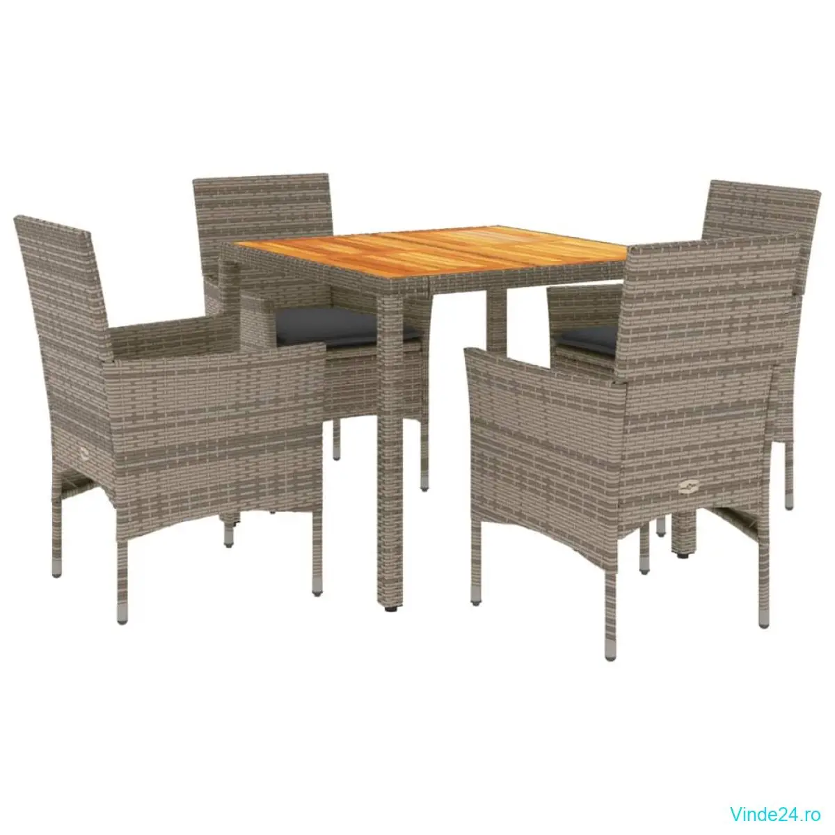vidaXL Set mobilier grădină cu perne 5 piese gri poliratan/lemn acacia