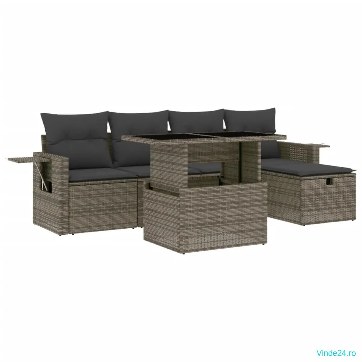 vidaXL Set mobilier grădină cu perne, 6 piese, gri, poliratan