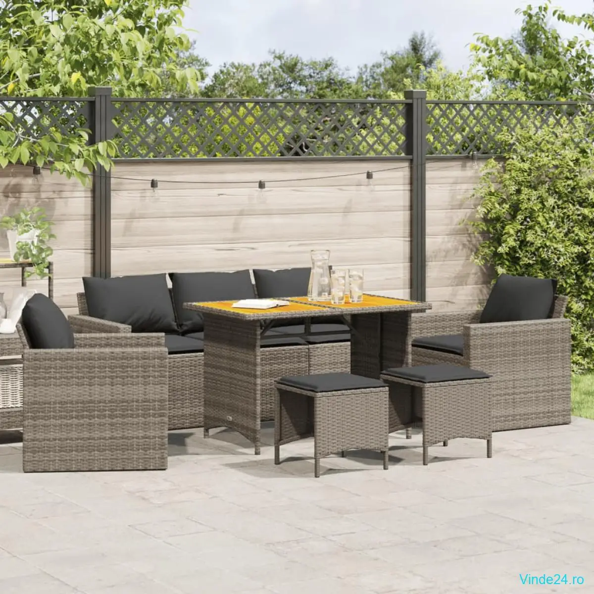 • Experiență confortabilă de ședere: Acest mobilier de exterior, dotat complet cu perne groase căptușite, oferă o experiență confortabilă de ședere.