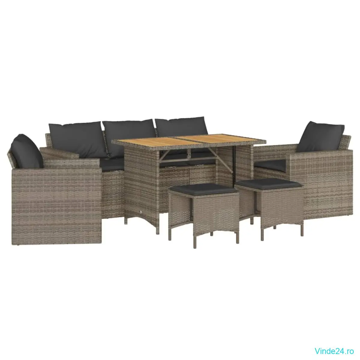 vidaXL Set mobilier grădină cu perne, 6 piese, gri, poliratan