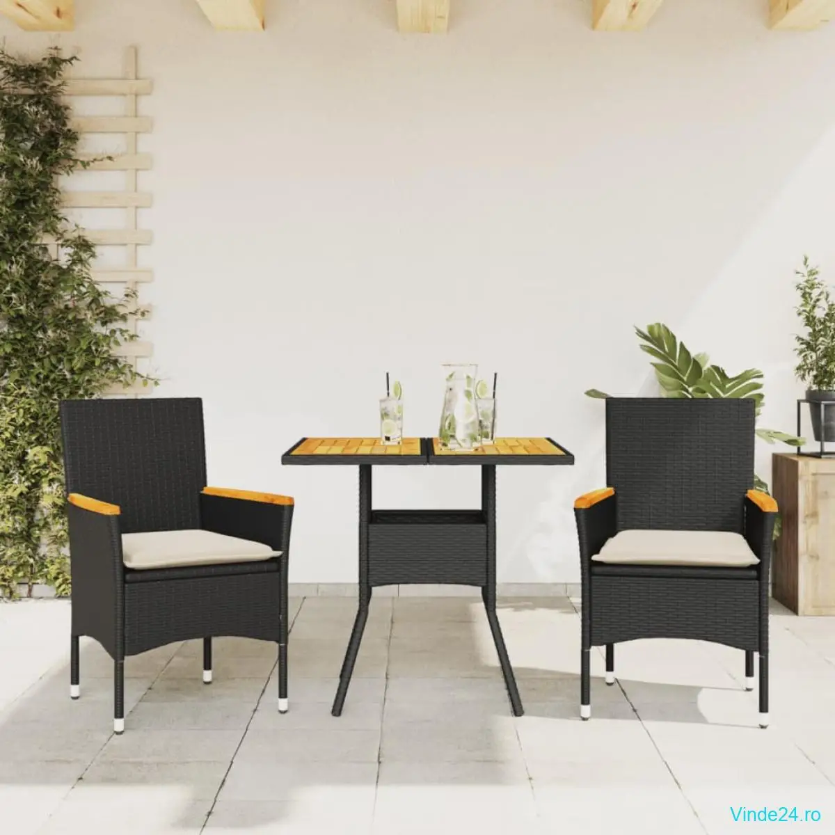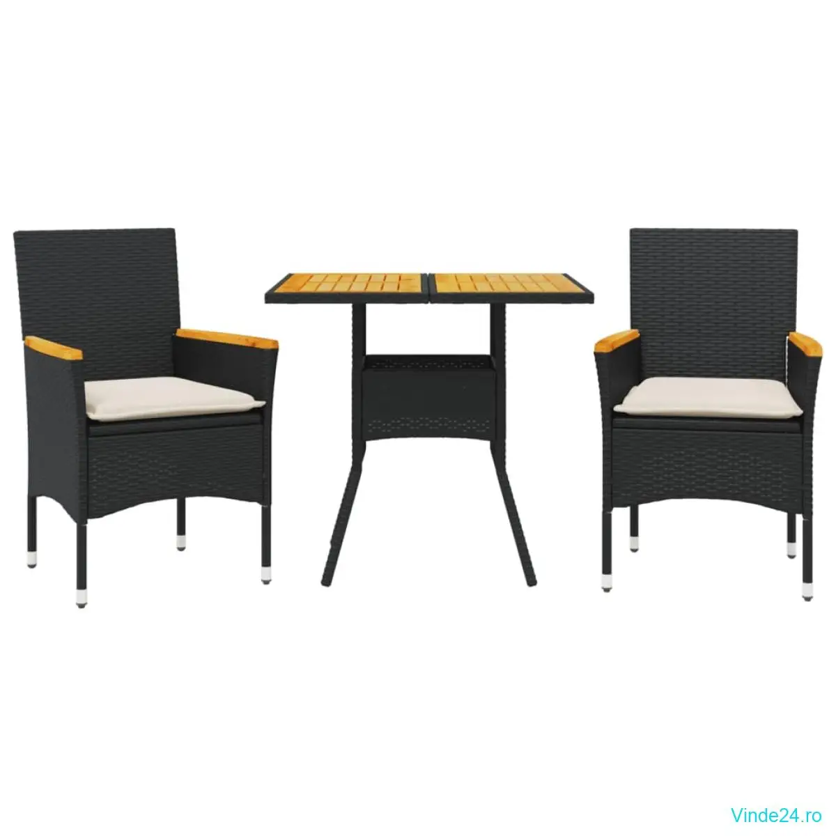 vidaXL Set mobilier grădină perne 3 piese negru poliratan/lemn acacia