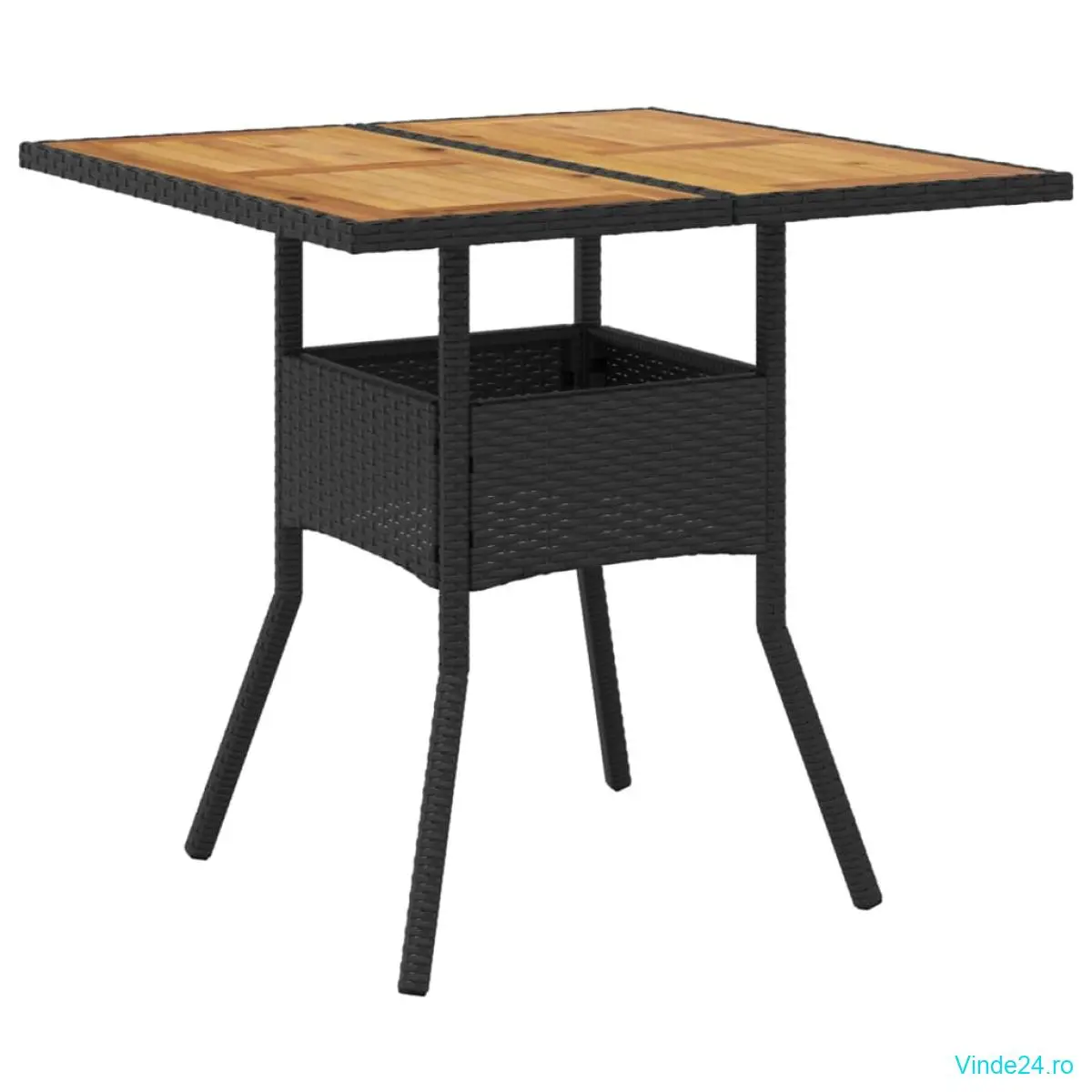 • Material: Ratan PE, oțel vopsit electrostatic, lemn masiv de acacia cu finisaj în ulei