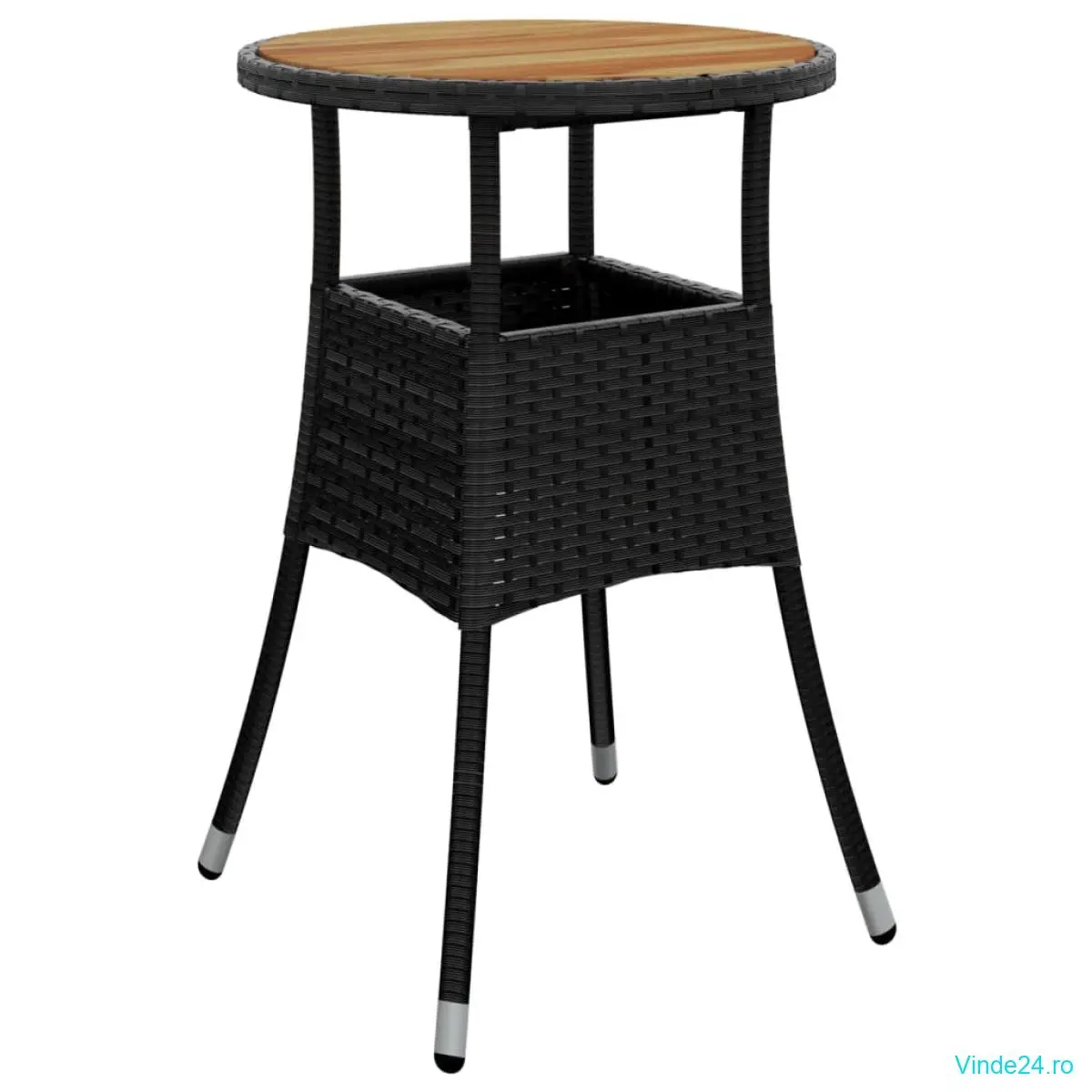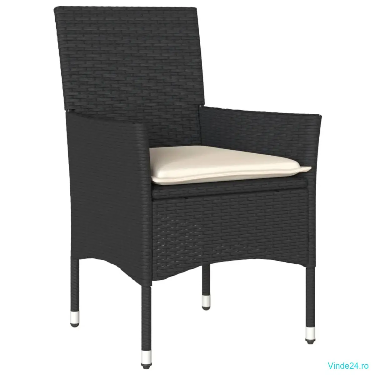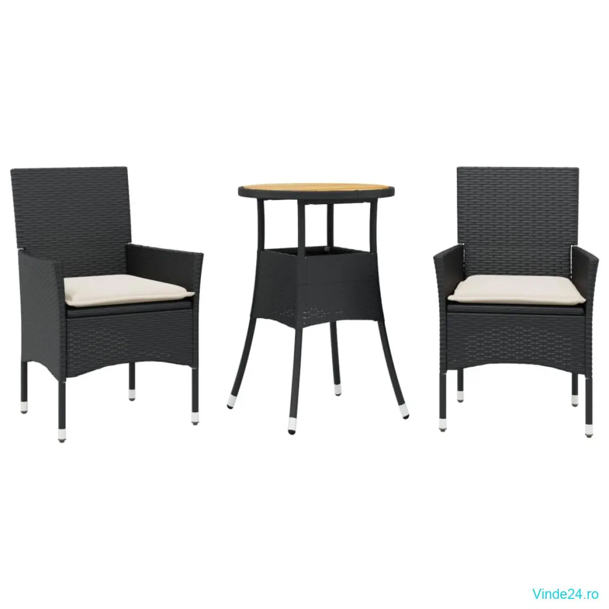 vidaXL Set mobilier grădină perne 3 piese negru poliratan/lemn acacia