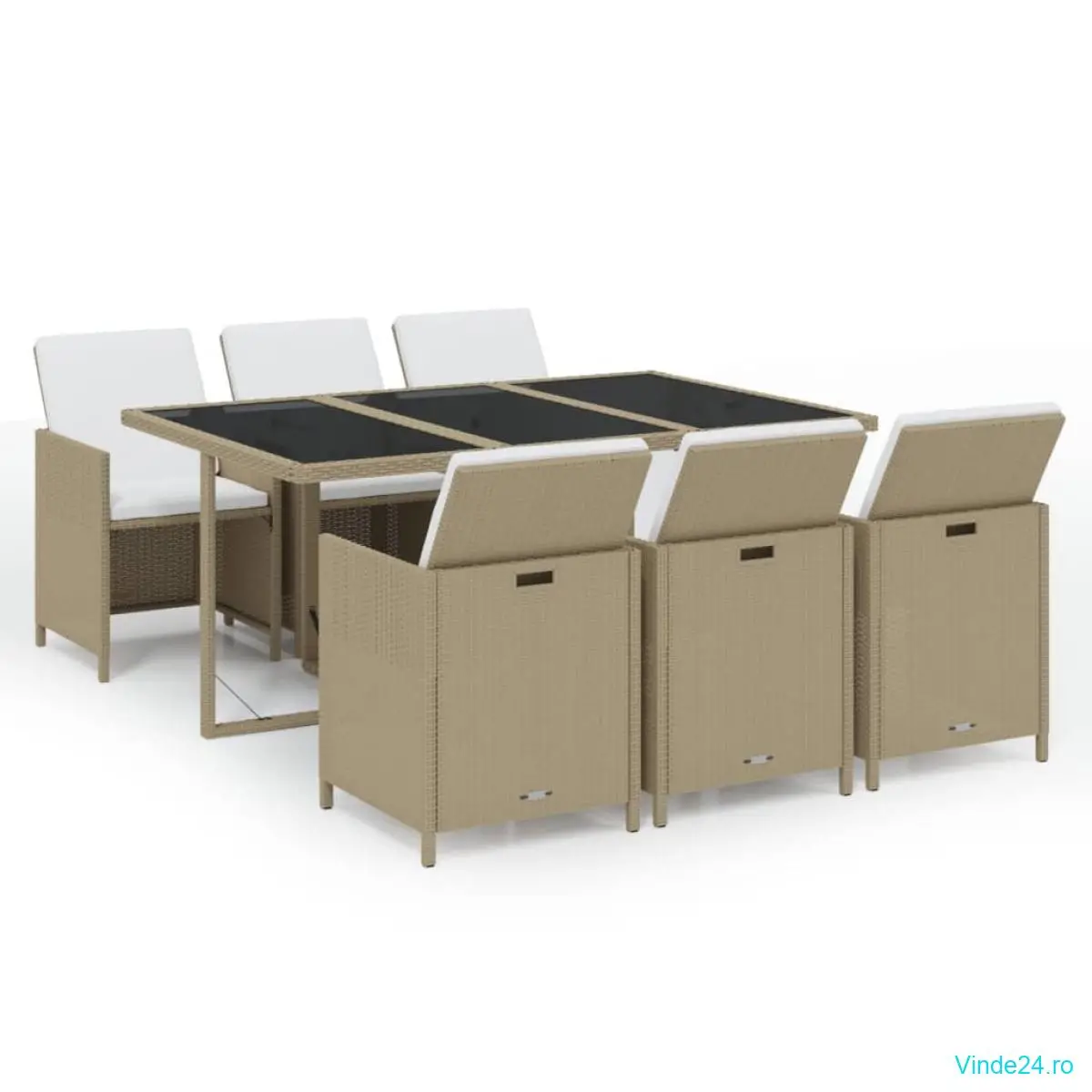 vidaXL Set mobilier pentru grădină cu perne, 7 piese, bej, poliratan