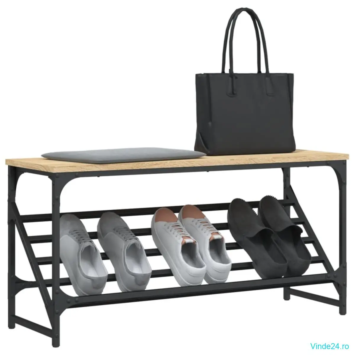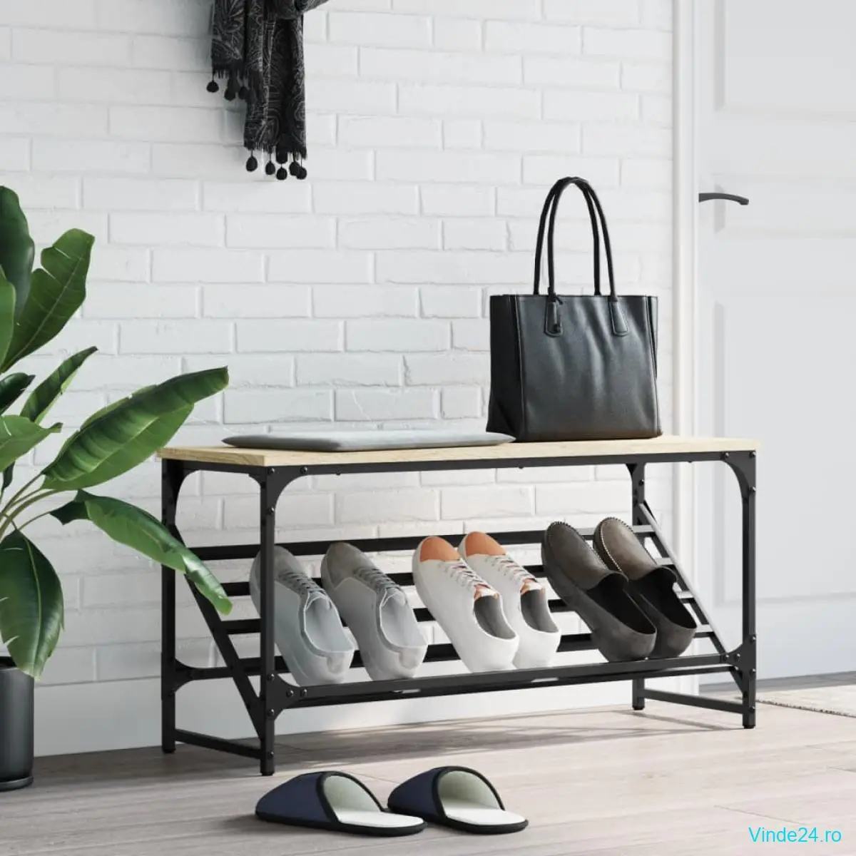 - Cadru stabil: Baza din oțel vopsit electrostatic negru oferă stabilitate și robustețe suplimentare pentru acest depozit de pantofi.