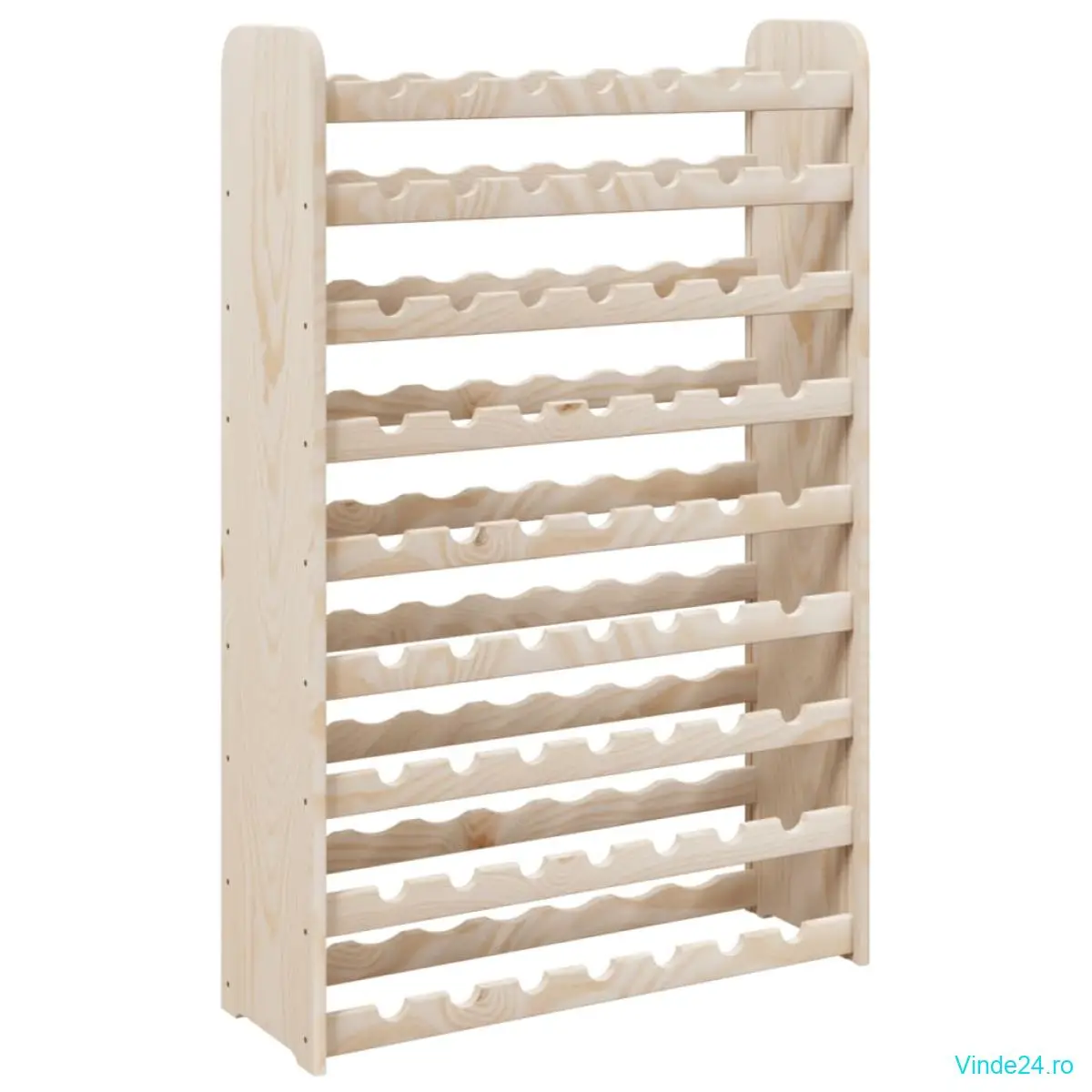 • Lemn masiv de pin: Acest suport pentru sticle de vin este realizată din lemn masiv de pin. Lemnul masiv de pin este un material natural frumos. Lemnul de pin are fibre drepte, iar nodurile dau materialului unicitate și un aspect rustic.