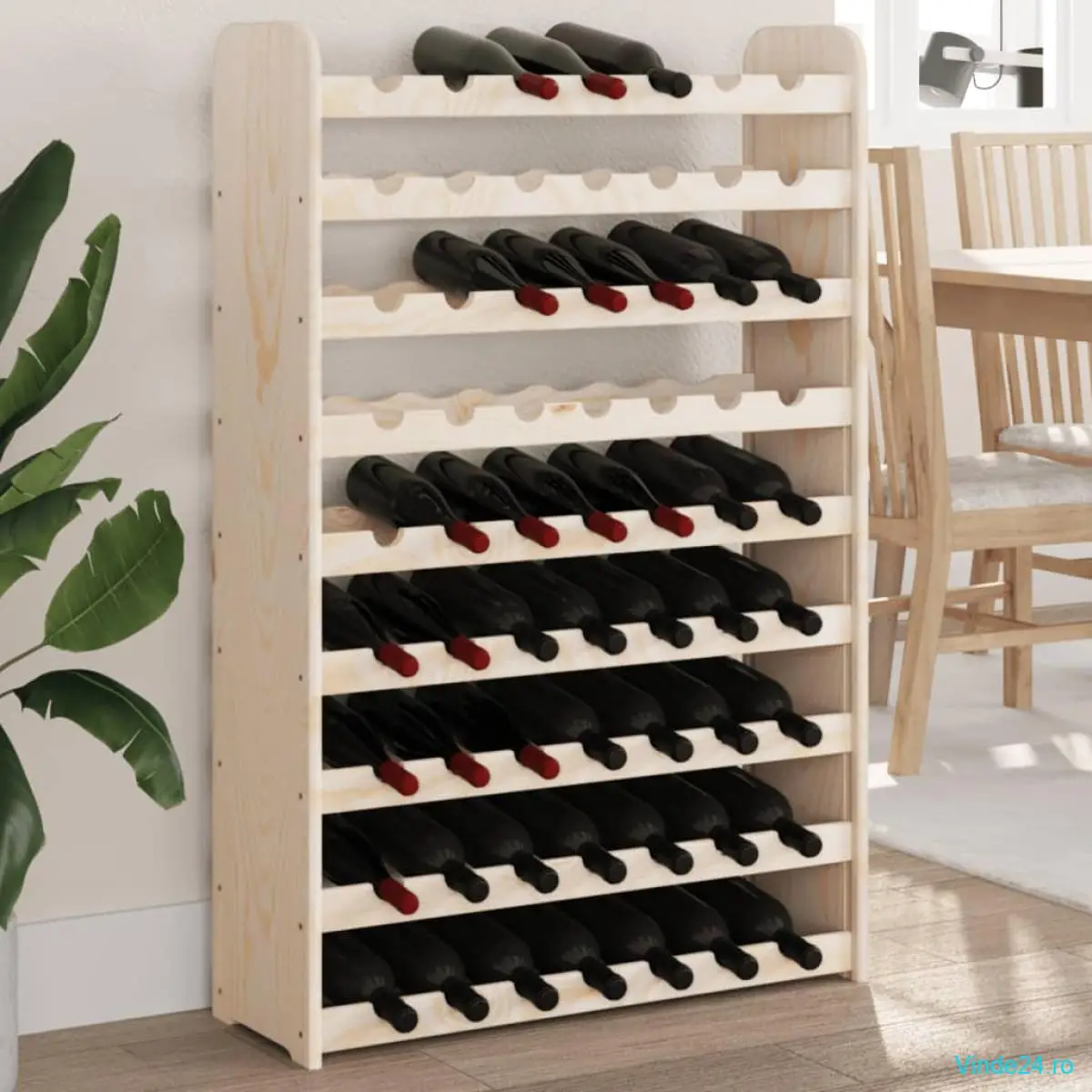 • Lemn masiv de pin: Acest suport pentru sticle de vin este realizată din lemn masiv de pin. Lemnul masiv de pin este un material natural frumos. Lemnul de pin are fibre drepte, iar nodurile dau materialului unicitate și un aspect rustic.