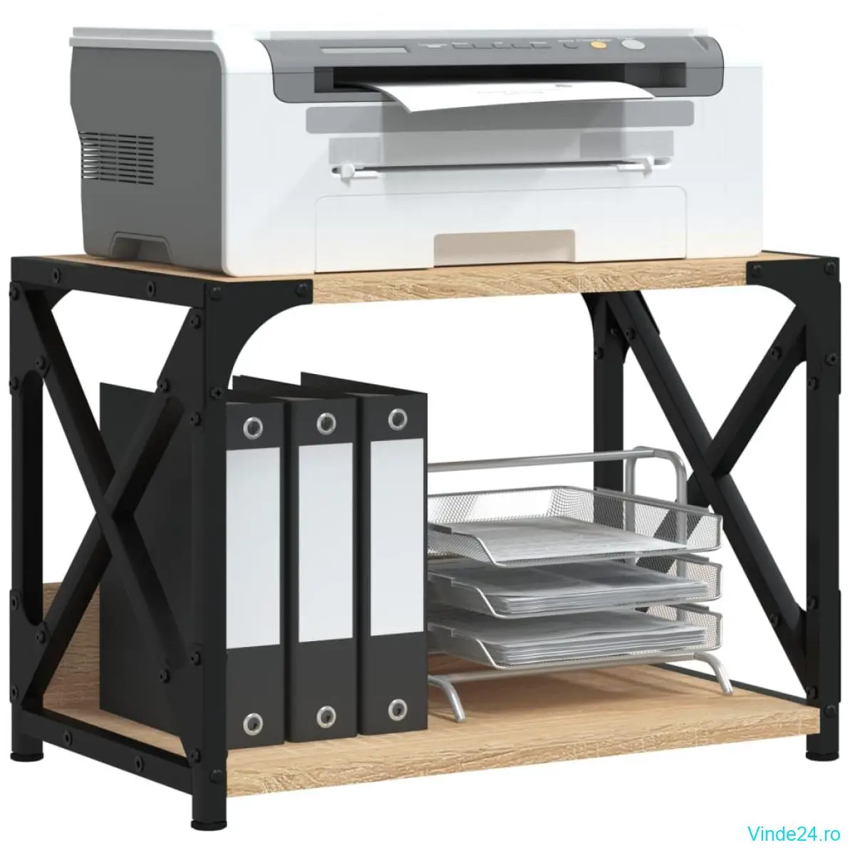 Suportul pentru imprimantă cu 2 niveluri păstrează totul ușor accesibil și vă face locul de muncă organizat și ordonat.