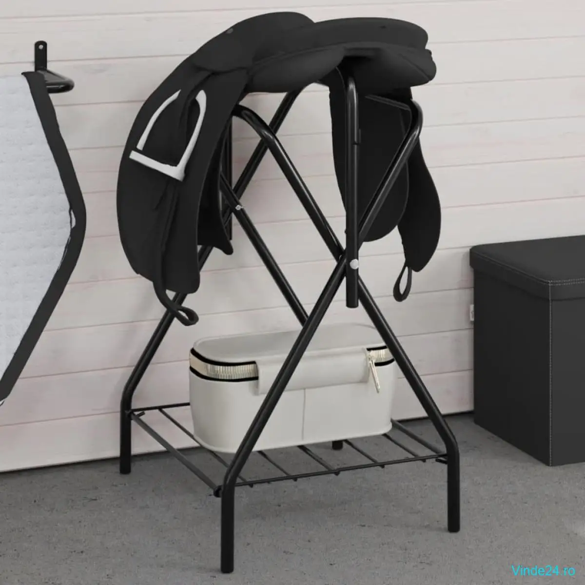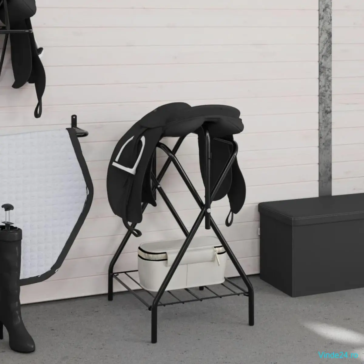 - Spațiu amplu: Suportul pentru șa cu un raft inferior oferă spațiu amplu pentru depozitarea echipamentului dvs. de echitație.