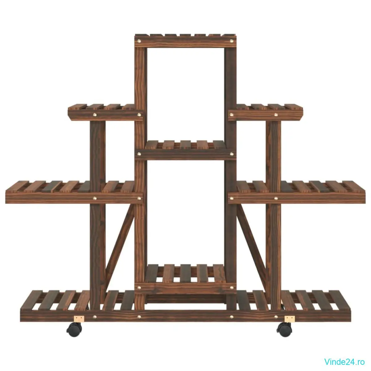 vidaXL Suport pentru flori cu roți, 110x25x101 cm, lemn masiv de brad