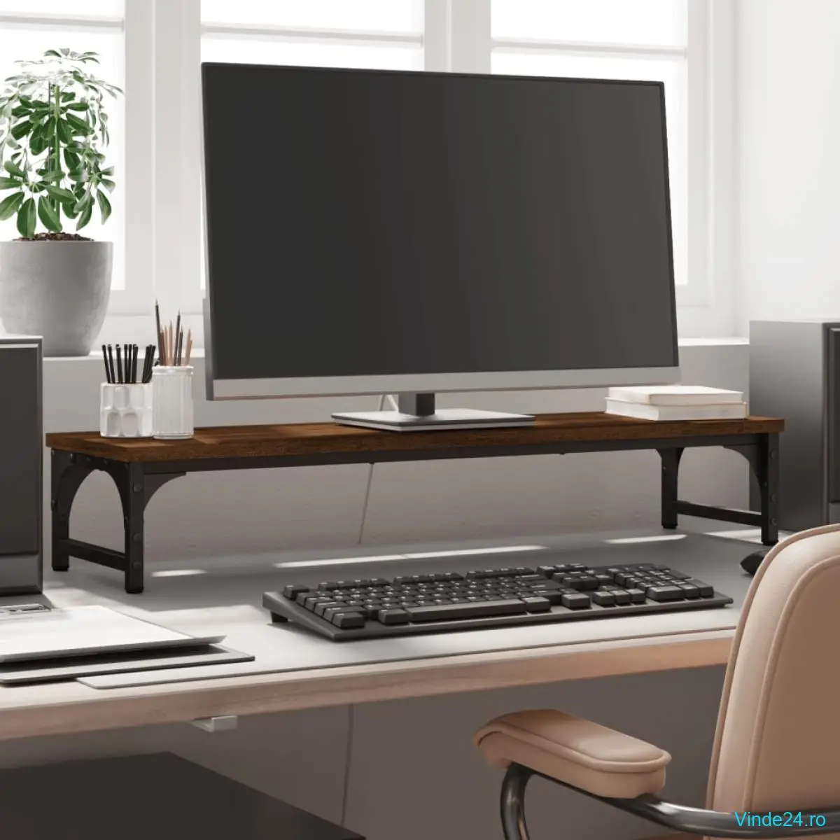 vidaXL Suport pentru monitor, stejar maro, 85x23x15,5 cm lemn compozit