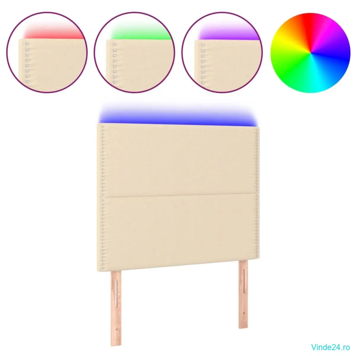 vidaXL Tăblie de pat cu LED, crem, 80x5x118/128 cm, textil
