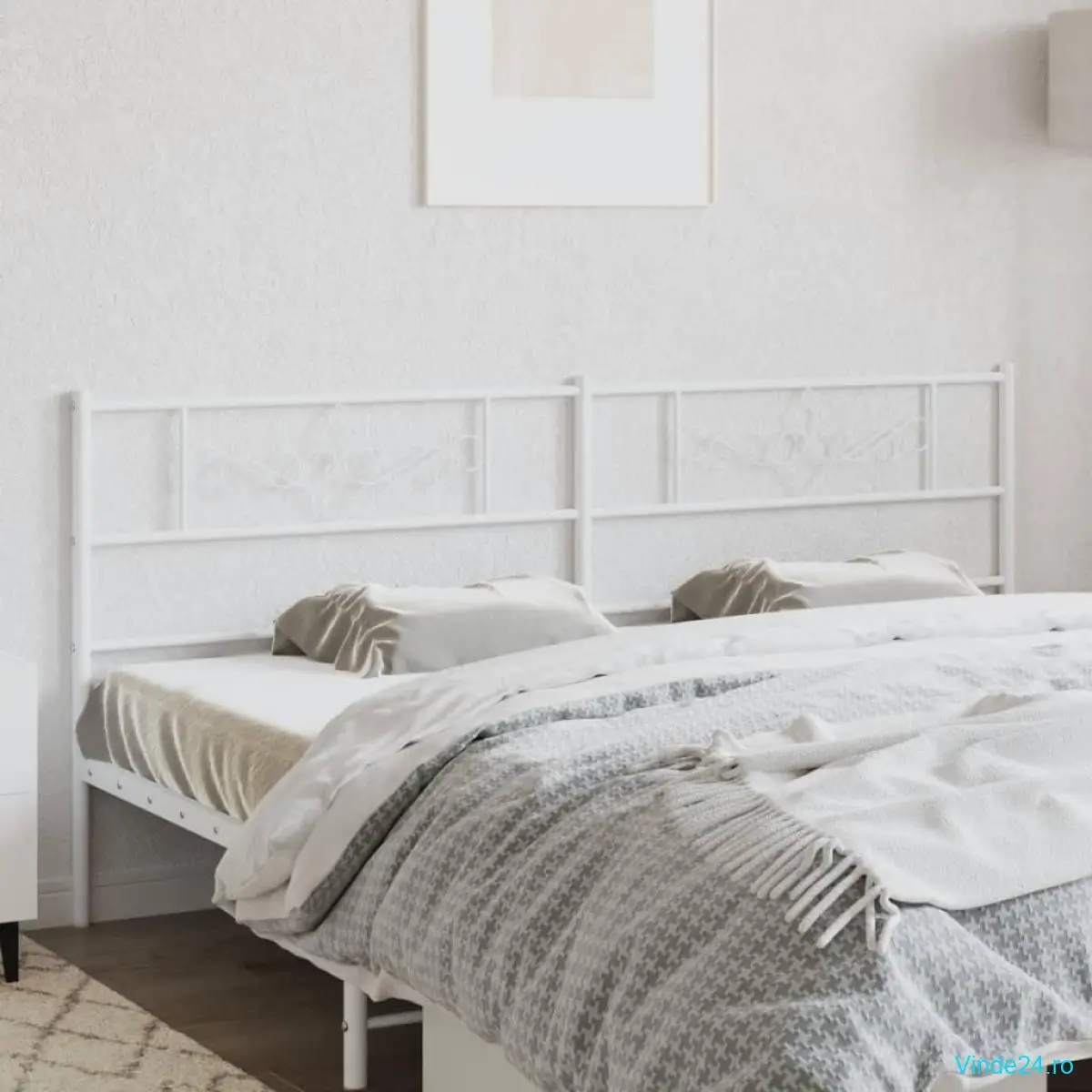 vidaXL Tăblie de pat metalică, alb, 193 cm