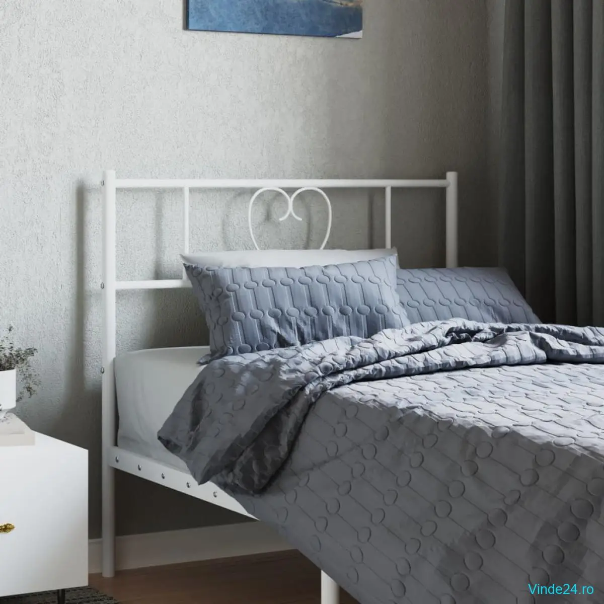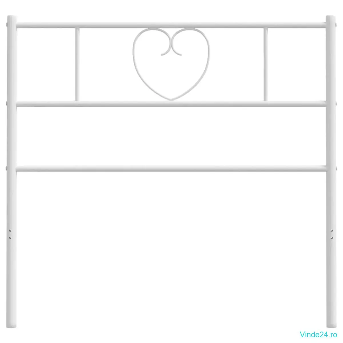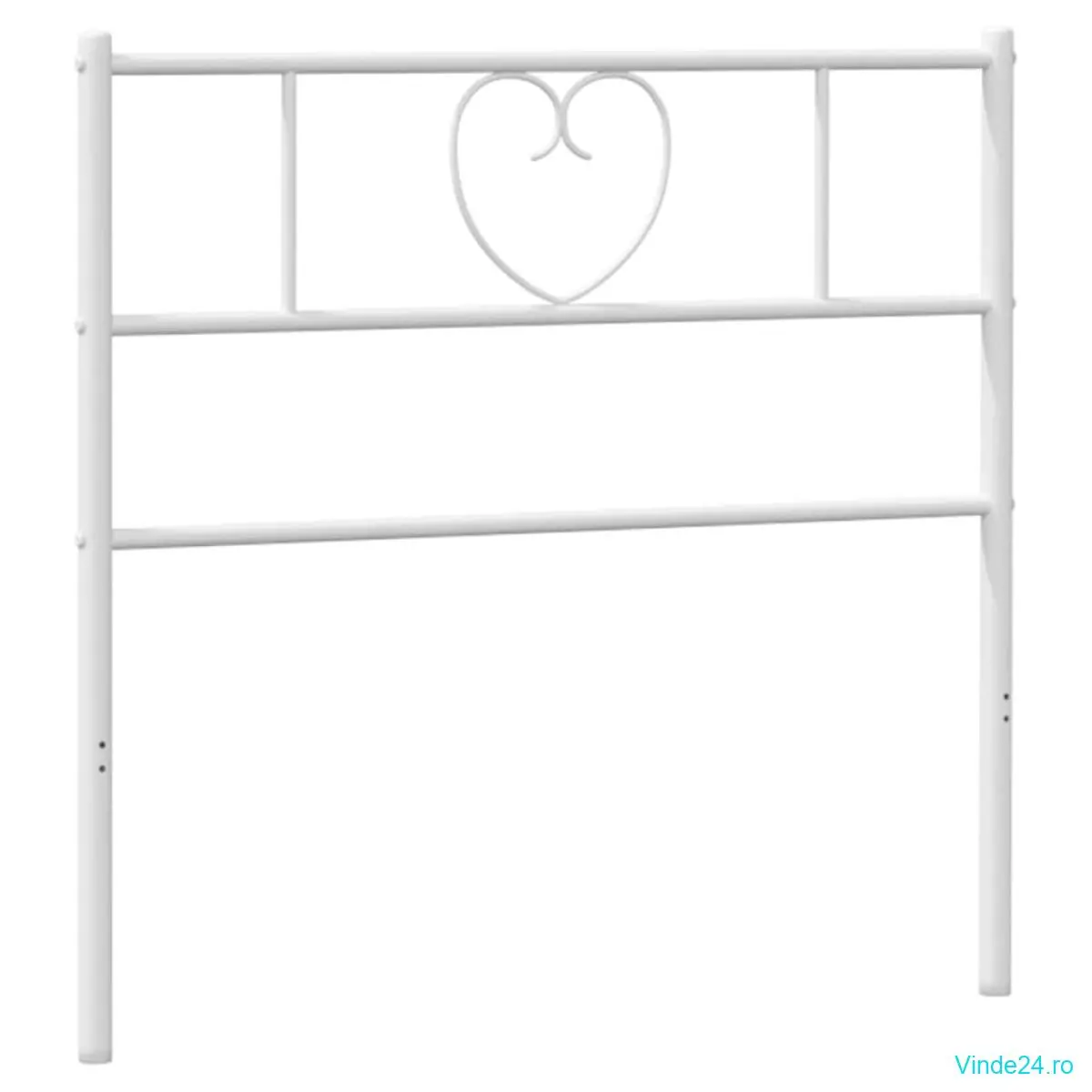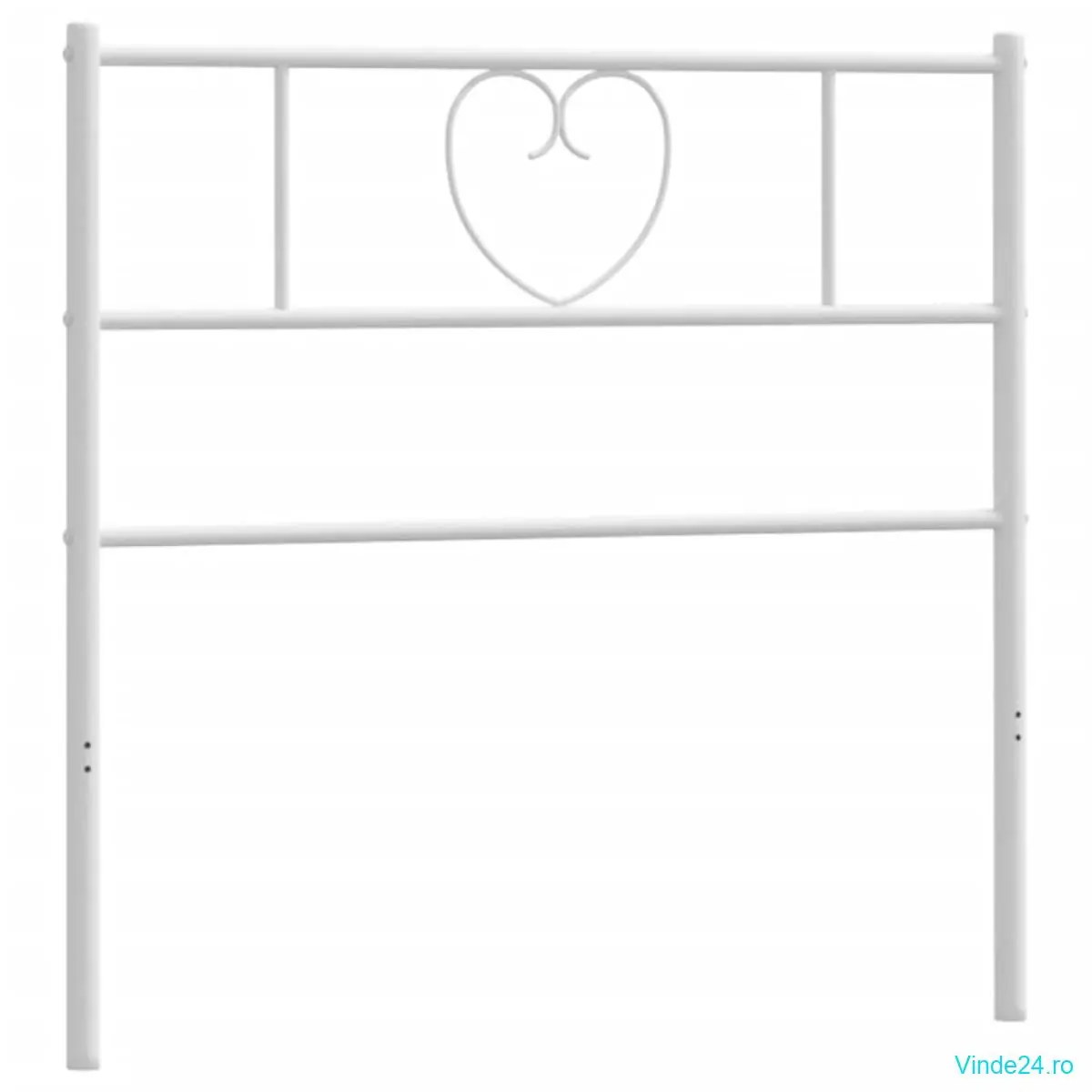vidaXL Tăblie de pat metalică, alb, 75 cm