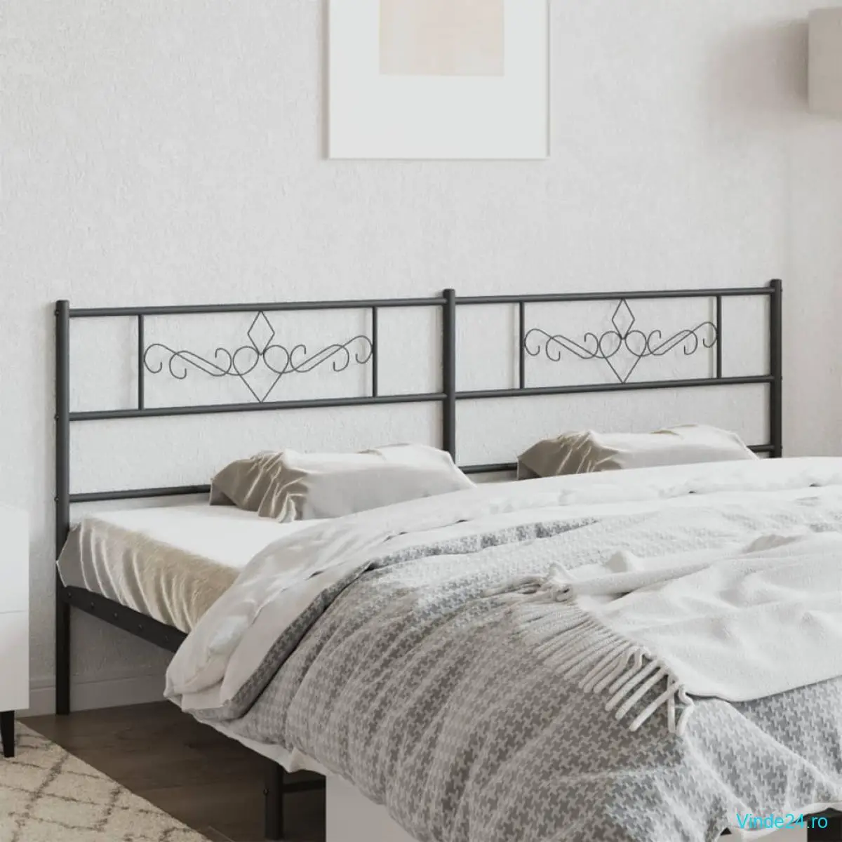 vidaXL Tăblie de pat metalică, negru, 200 cm