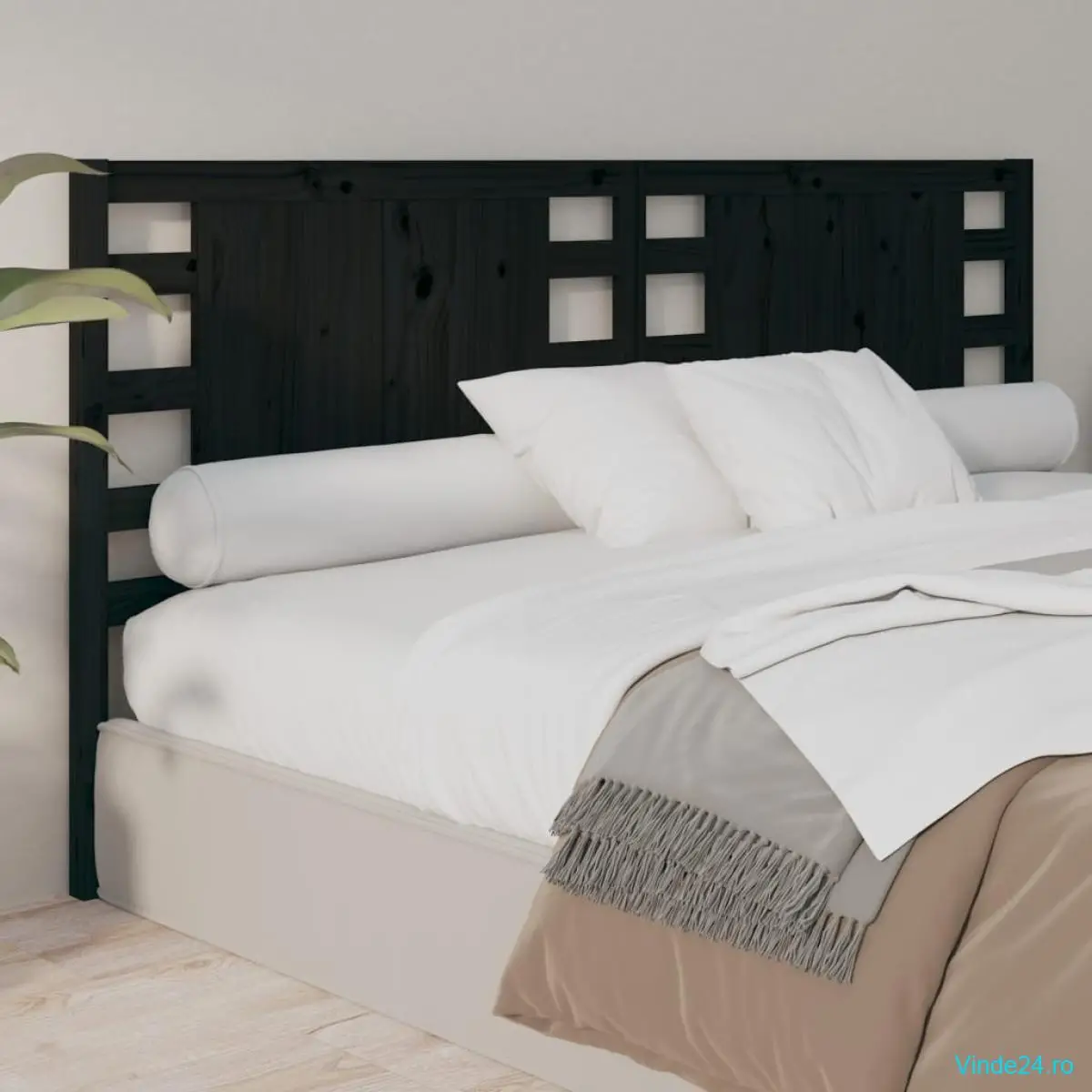 vidaXL Tăblie de pat, negru, 166x4x100 cm, lemn masiv de pin