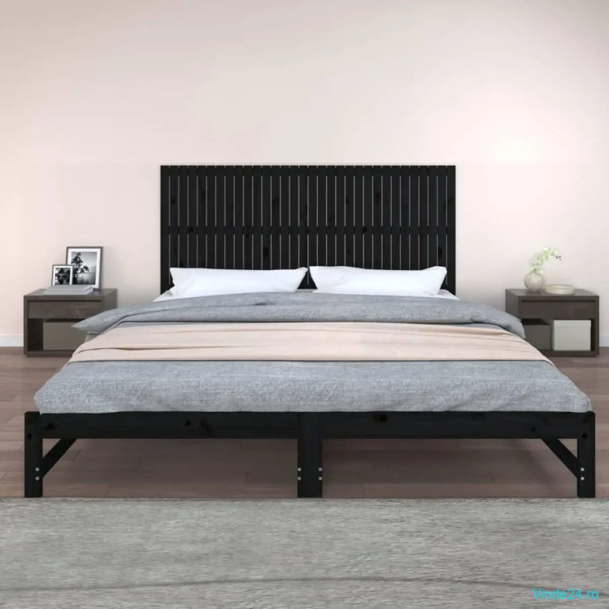 vidaXL Tăblie de pat pentru perete, negru, 204x3x90 cm, lemn masiv pin