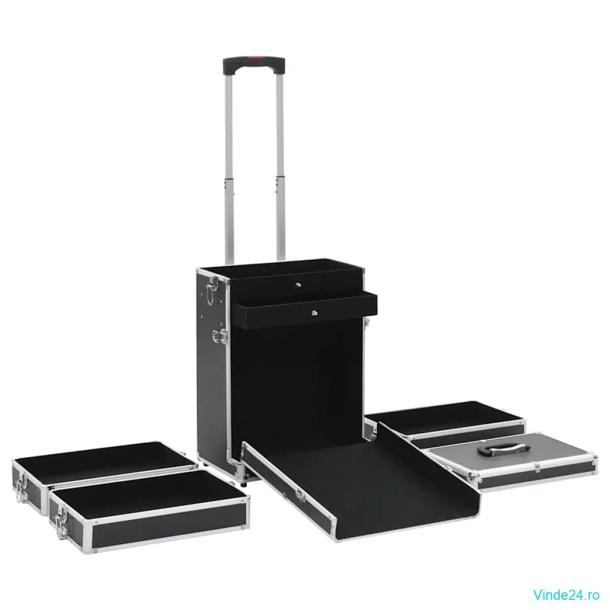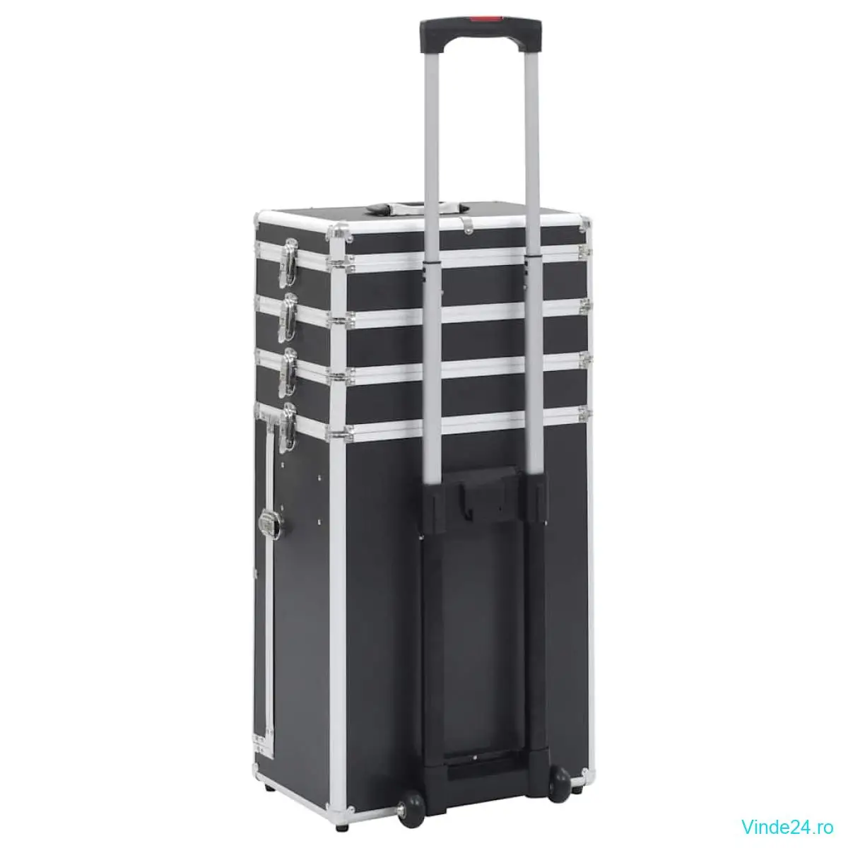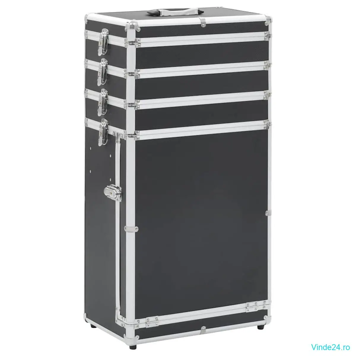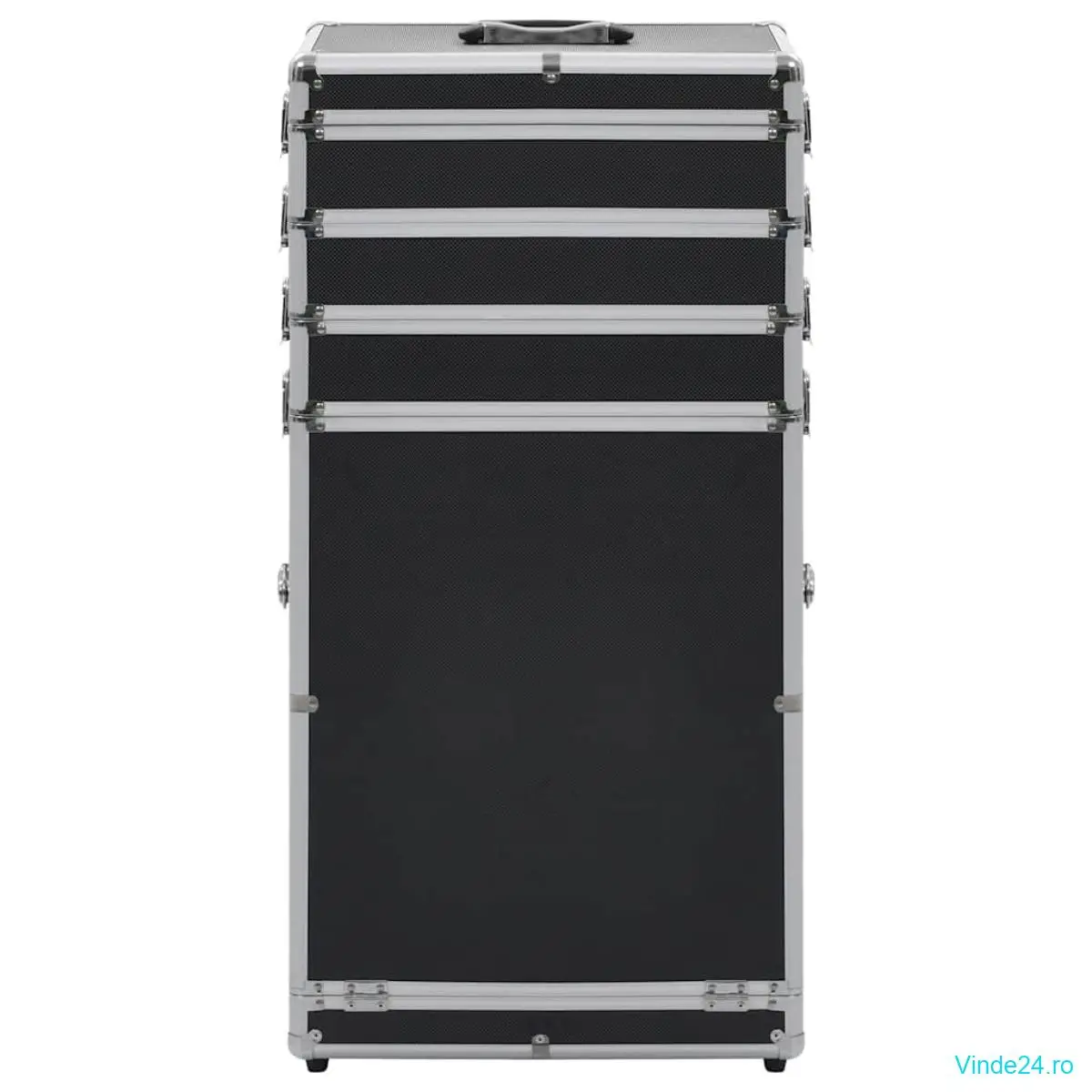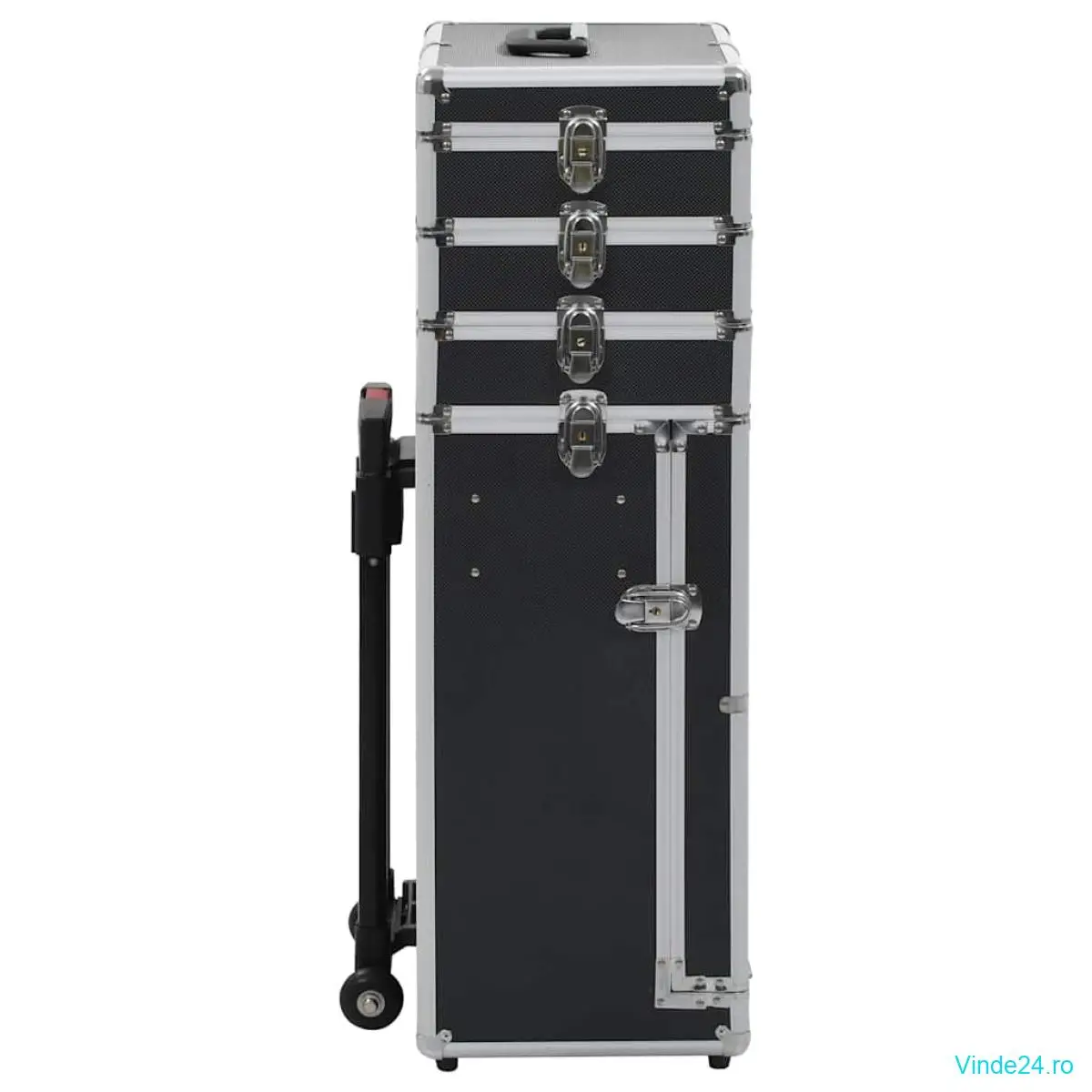 Fabricată din lemn, foaie de ABS și aluminiu, această geantă de cosmetice este ideală pentru depozitarea produselor cosmetice și menținerea lor în stare perfectă. Lada de cosmetice este prevăzut cu 4 niveluri și 1 sertar, oferind un spațiu amplu de depozitare pentru cosmeticele și produsele dvs. de înfrumusețare. În plus, trusa de cosmetice este prevăzută cu 4 roți detașabile, care vă permit să o mutați și să o luați cu dvs. peste tot!