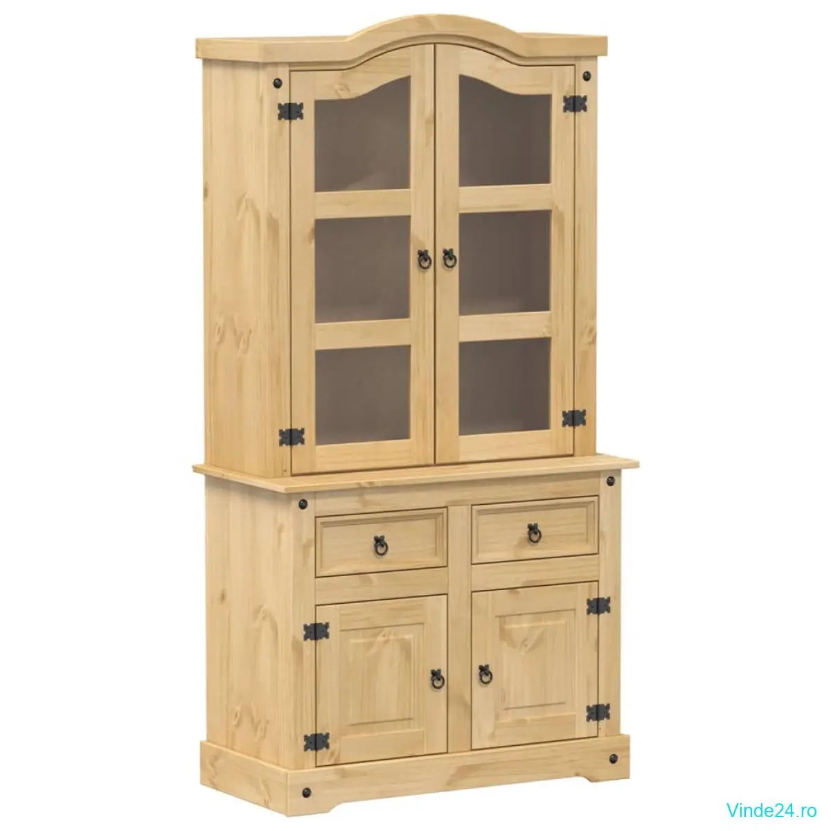 vidaXL Vitrină din sticlă „Corona” 100x48,5x179 cm, lemn masiv de pin
