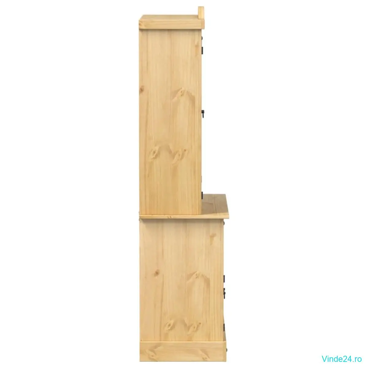• Material: Lemn masiv de pin finisat cu ceară de miere, lemn prelucrat, metal