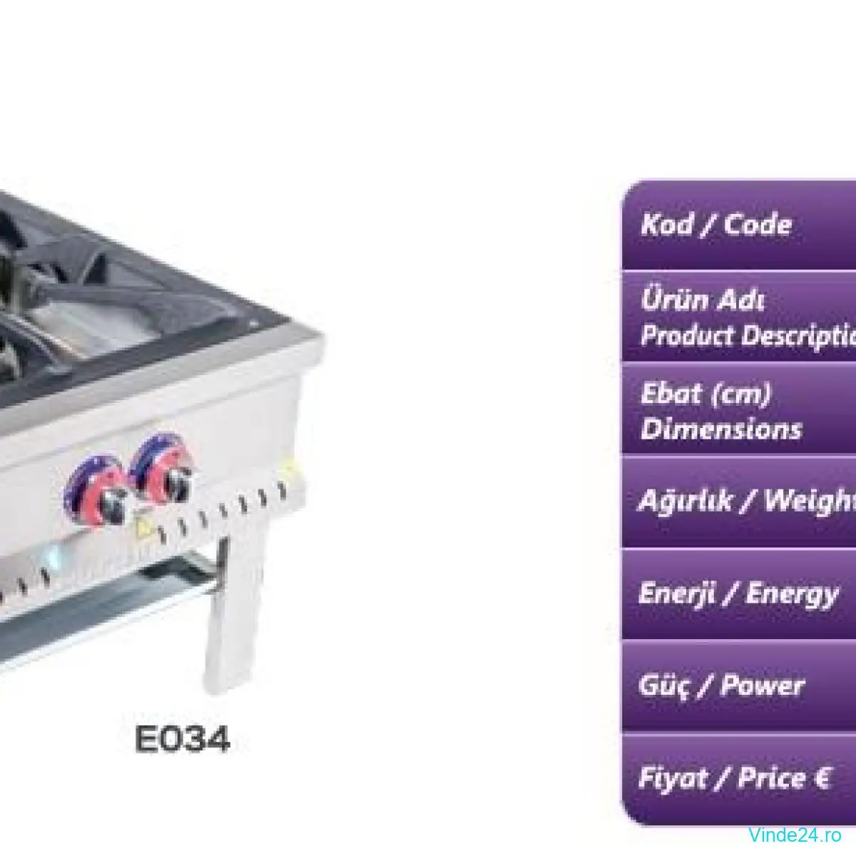 E034 – - Aragaz inox, de podea cu 2 arzatoare, alimentare GAZ,