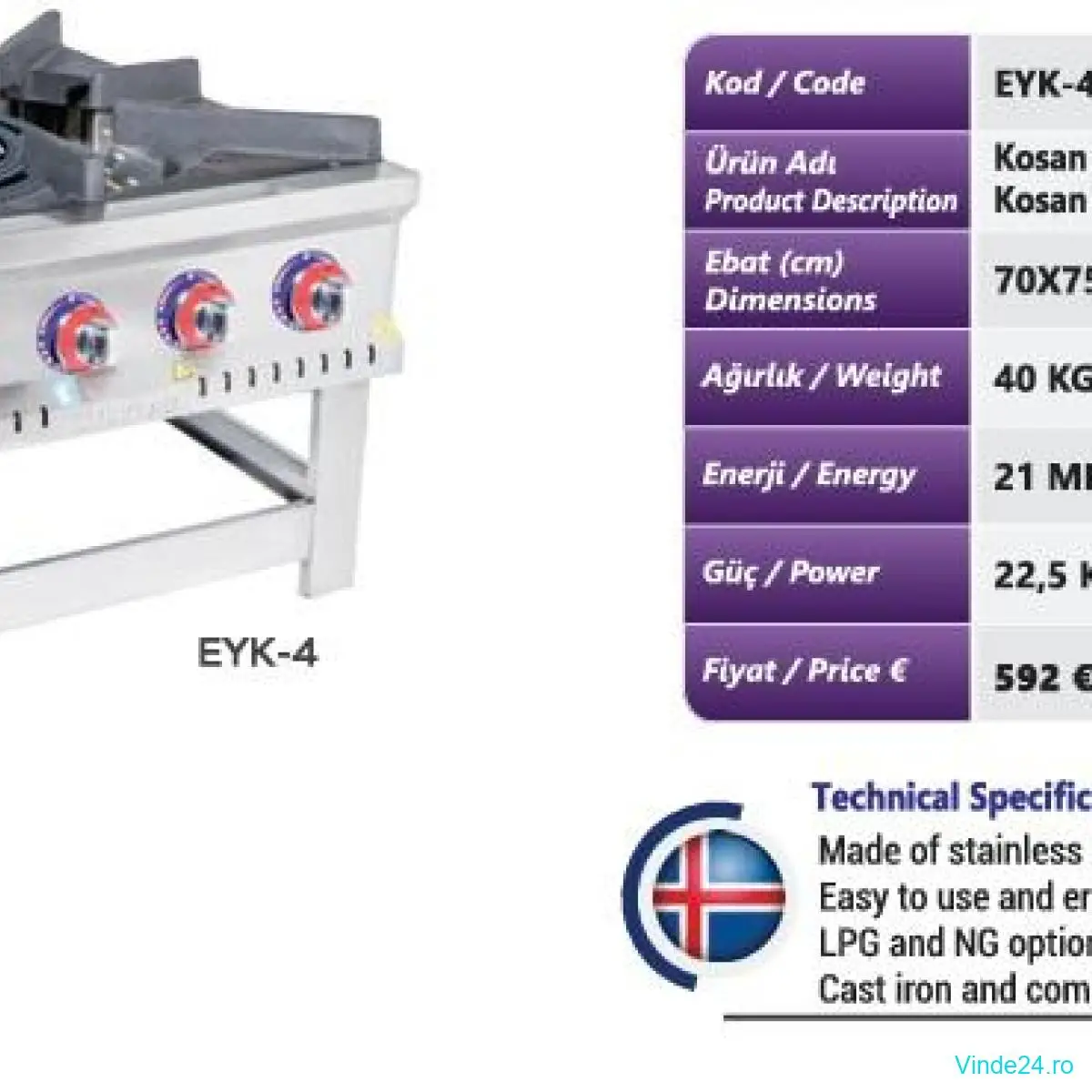 EYK-4 - Aragaz inox, de podea cu 4 focuri concentrice, alimentare GAZ,