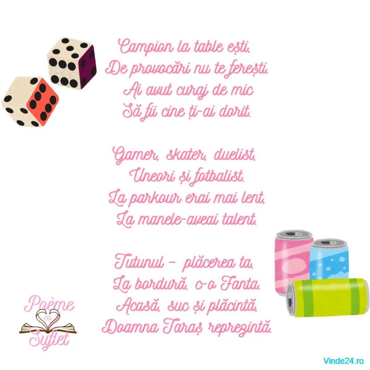 Fiecare poezie este unică, realizată pe baza detaliilor oferite, astfel încât mesajul să fie personal, sincer și memorabil.