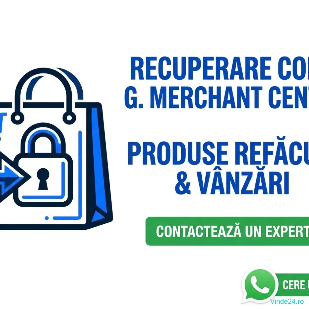 Avand multi ani de experienta in domeniu, va ofer servicii profesionale de configurare, analiza si remediere pentru Google Merchant Center. Nu utilizez metode automate; lucrez manual pe fiecare feed si eroare in parte pentru a asigura aprobarea produselor & reactivarea contului. ( pentru mai multe detalii accesati website-ul gmcn.ro )